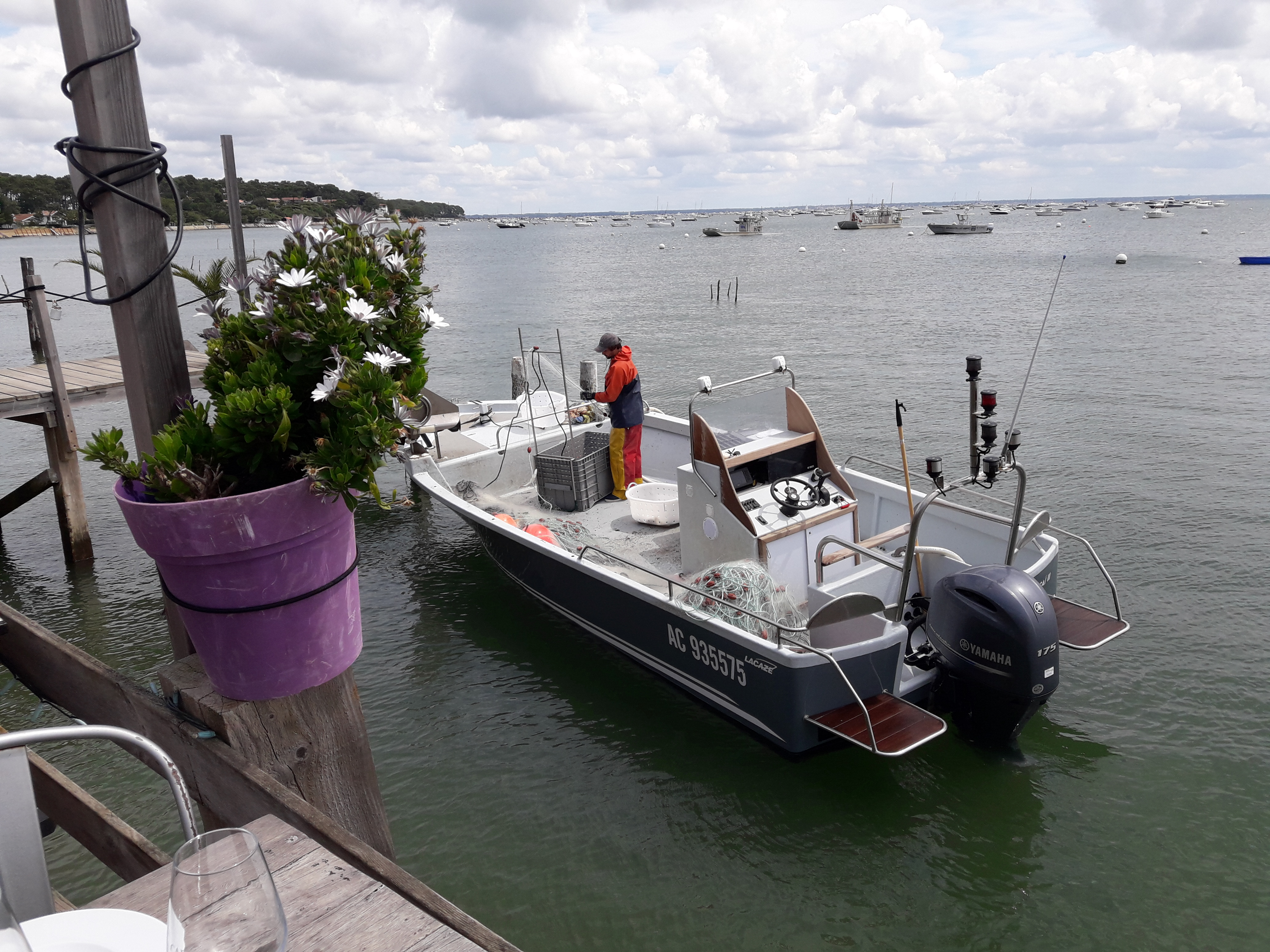 La vue fabuleuse sur le Bassin des gens très sympa et un régal de fruits de mer
