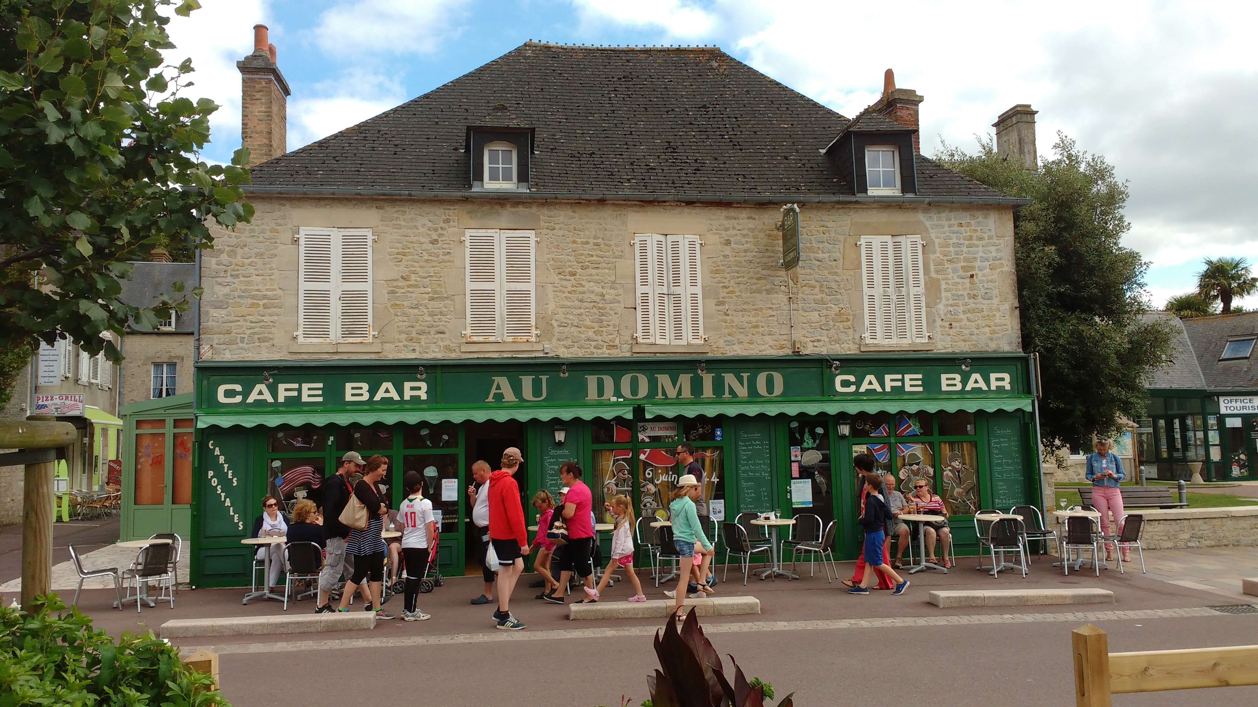 Tres sympa en face de la célèbre eglise du débarquement