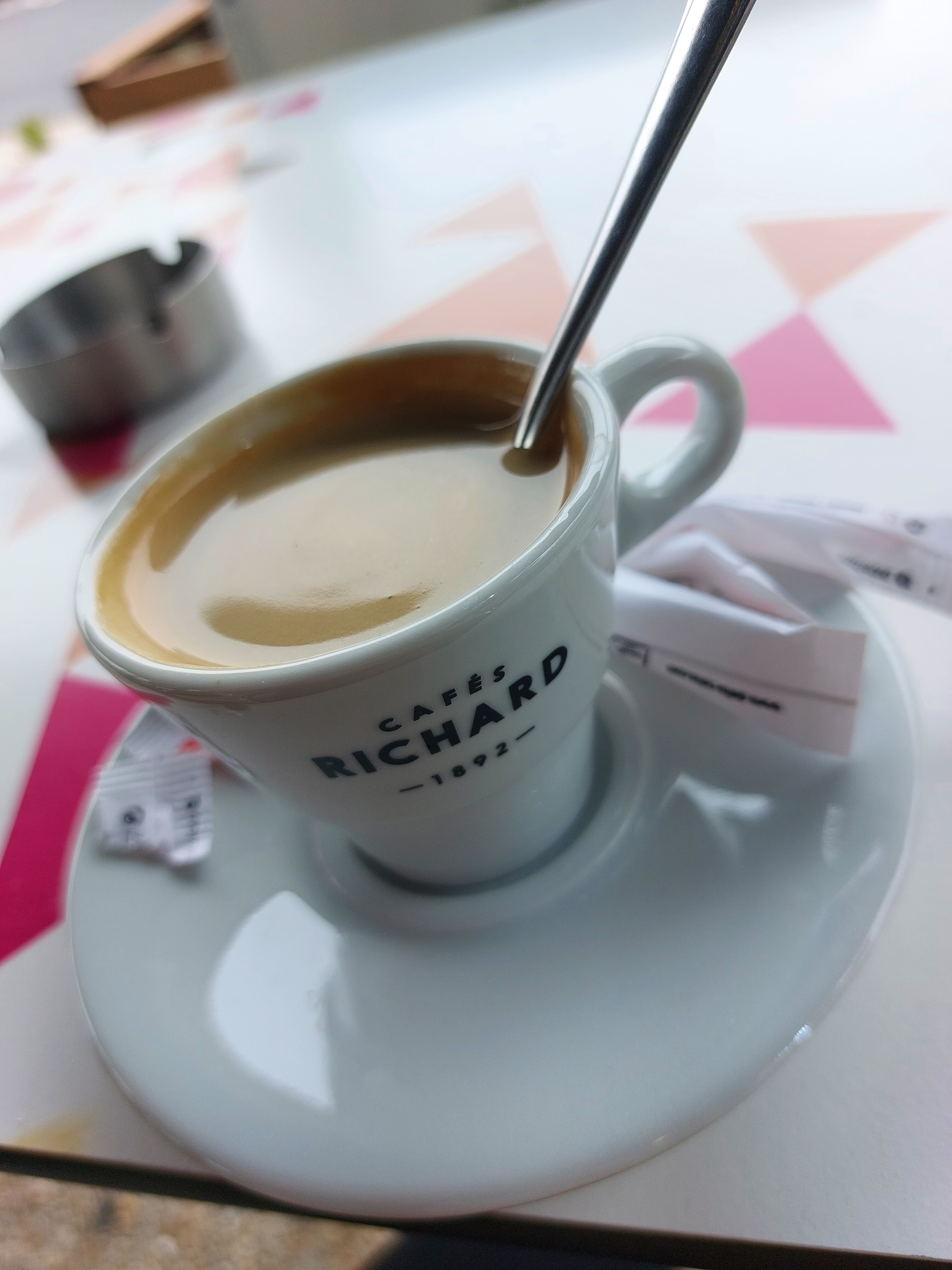 Le prix d'un café dépend de où je m'assois. Je décide de m'asseoir à la terrasse (TERASSE DE SEULEMENT 4 TABLES JE PRÉCISE, AVEC AUCUNE BELLE VUE) et je paye mon minuscule café à 2€ . Trop cher pour un simple café . Le seul conseil que j'ai à donner: prenez un café ailleurs .