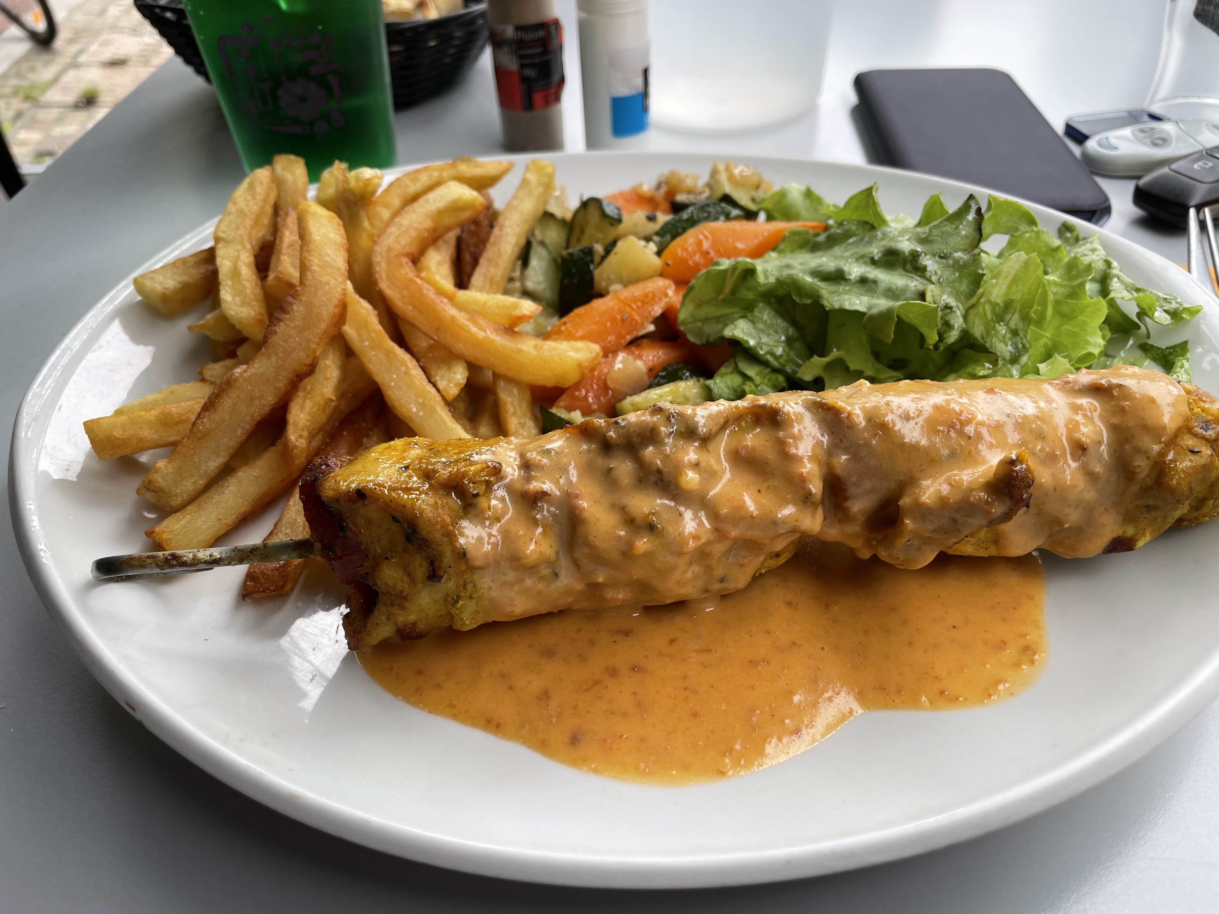 Très déçue d ’avoir mangé dans cet établissement !........pour avoir commandé une salade nicoise on m’à servi du riz et du thon !.......Ensuite des frites très grasses , très cuites et très molles !......Je n ’ai jamais mangé des frites aussi mauvaises !......(d’ ailleurs je ne les ai pas mangées) !.......J’ ai également pris une brochette de bœuf dont la viande était quasiment crue et froide !........Je ne reviendrais jamais manger ici !........A fuir !!!............