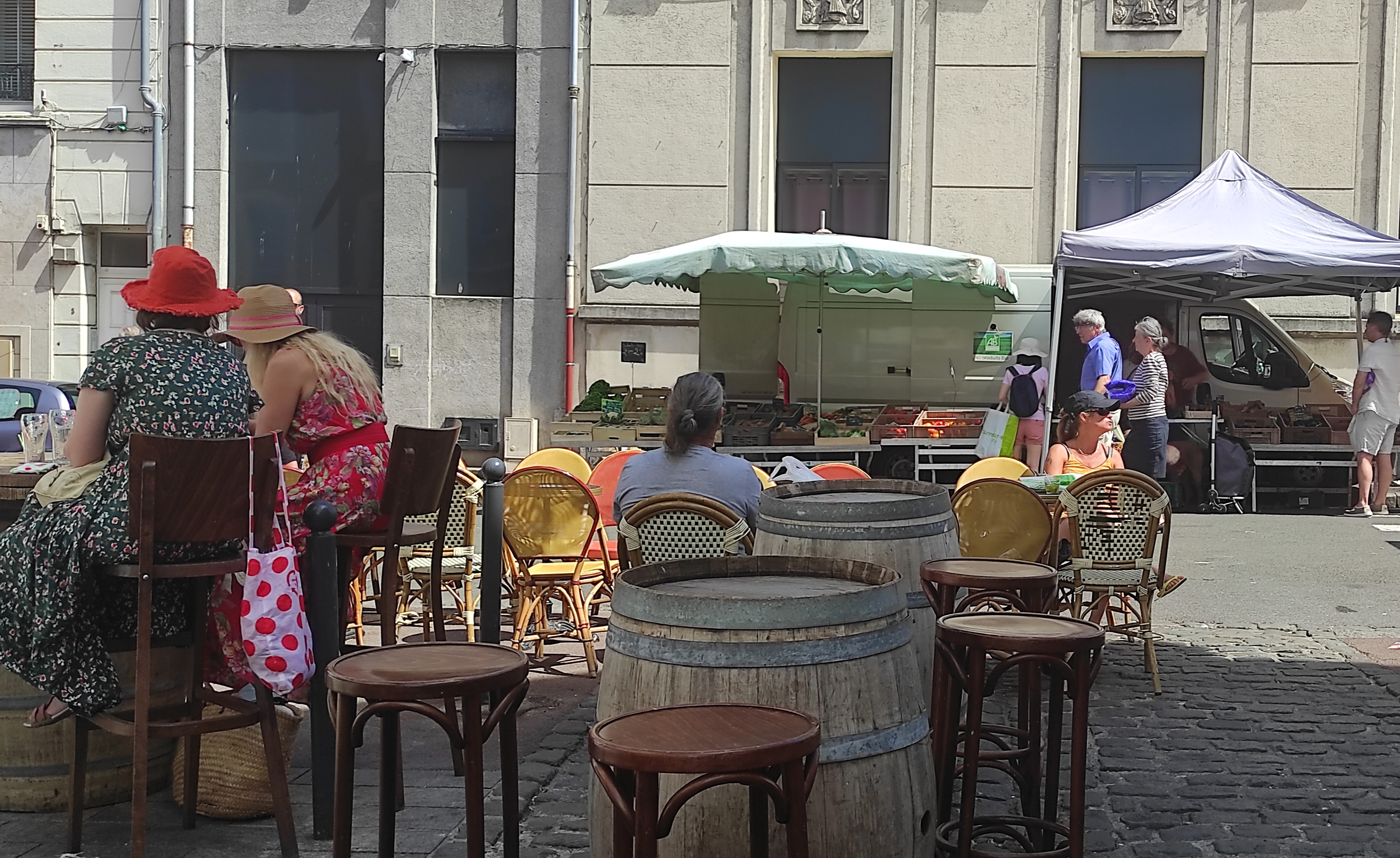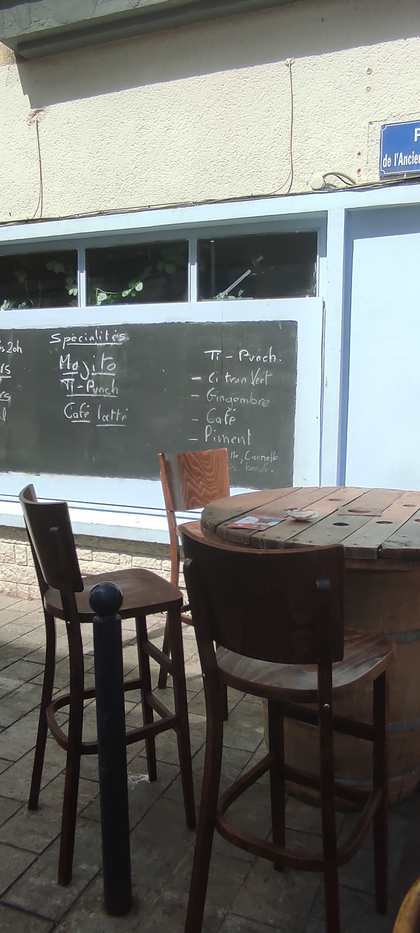 Un endroit extrêmement agréable pour s'installer en terrasse samedi matin et profiter de l'ambiance du marché confortablement installé, au soleil ou à l'ombre selon votre préférence, avec en fond sonore une bonne sélection de chansons françaises. Bien sympathique de s'offrir un mojito ou un ti-punch, spécialités de la maison, bien frais quand on vient de finir son marché. On est bien, on écoute la musique, on regarde passer le monde c'est parfait ! Je recommande !