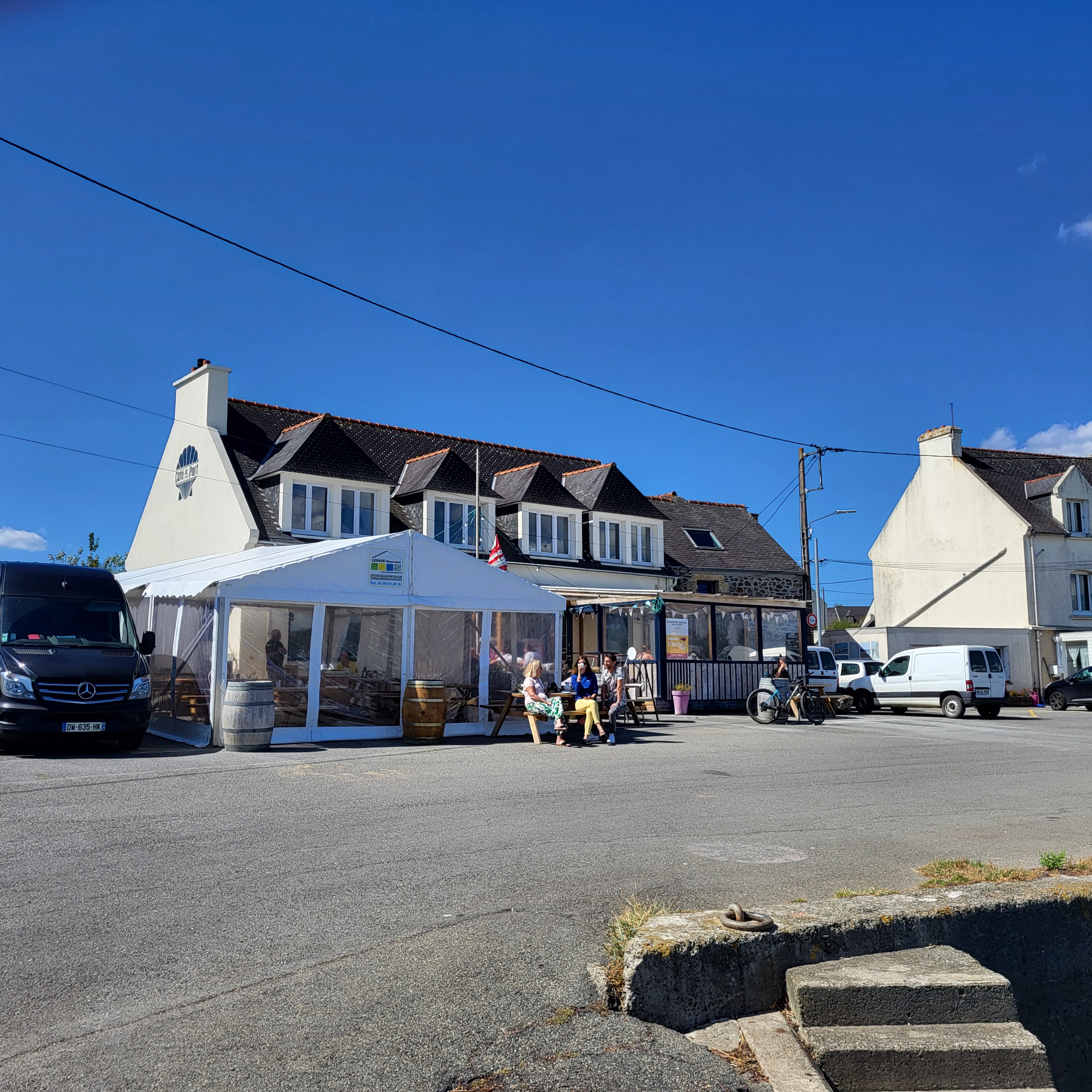 Un petit café sur les quais d'un petit port avec toute la rade devant. Superbe.