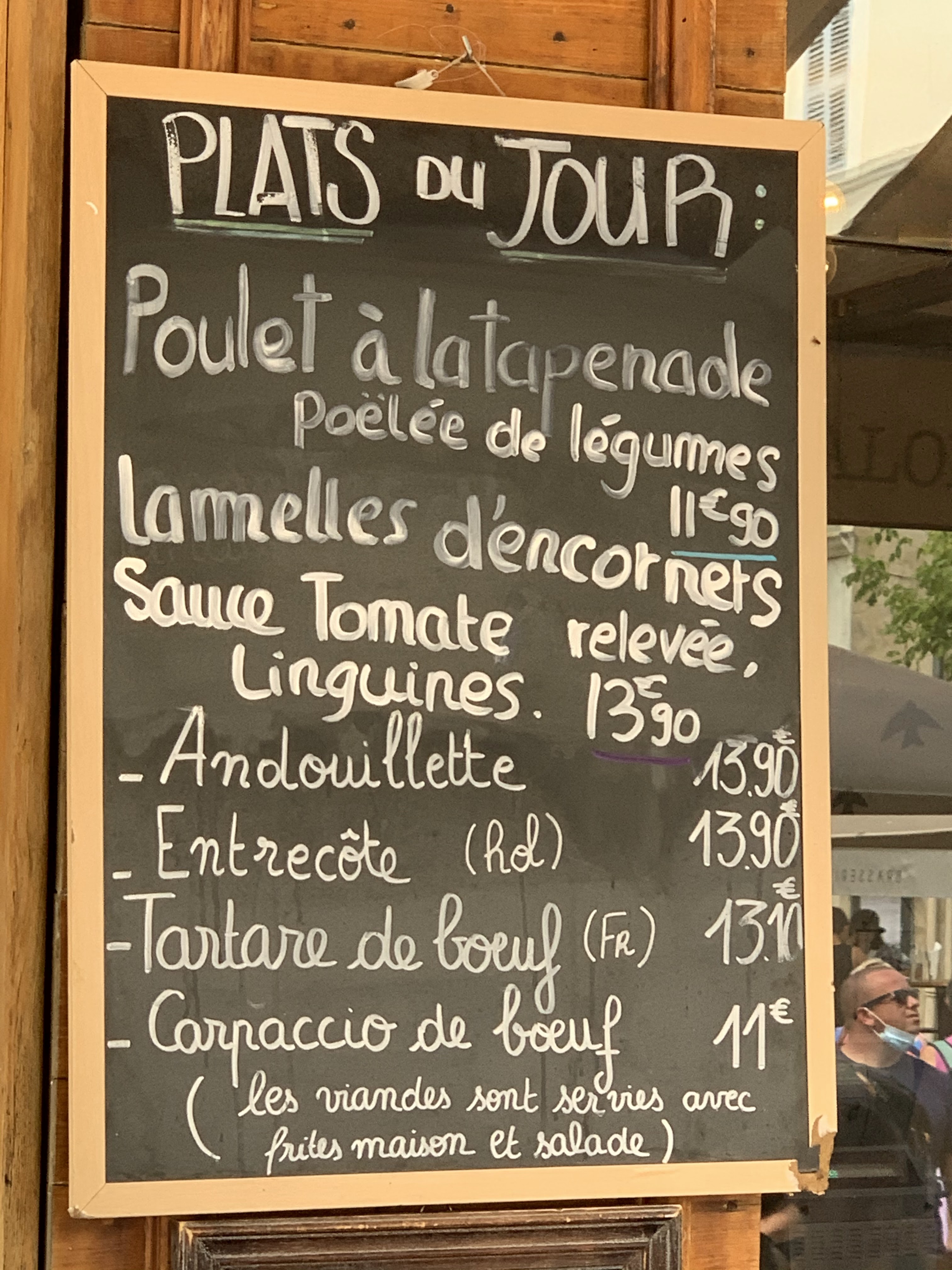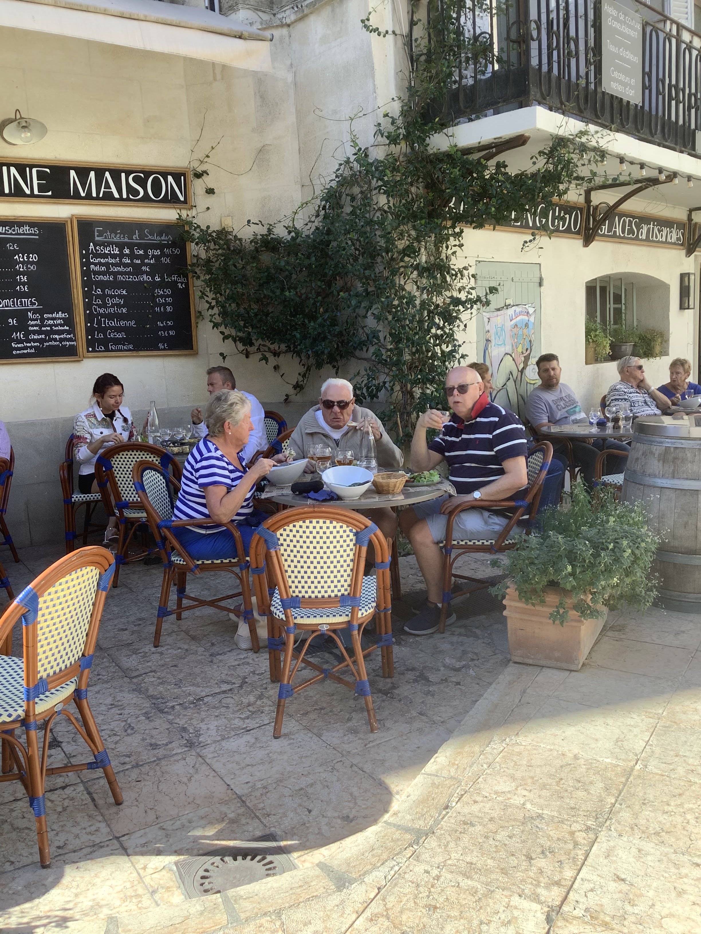 Les serveurs étaient charmants et le cadre est imbattable au cœur de Lourmarin. Nous avons mangé un matin froid à l'intérieur, à la grande table de la ferme, ainsi que pour le petit-déjeuner et le dîner, sur l'une des nombreuses tables extérieures. L'œuf/jambon/baguette du matin était simple et parfait pour commencer la journée, le tartare était correct mais les frites étaient les meilleures que nous ayons eues en Provence.