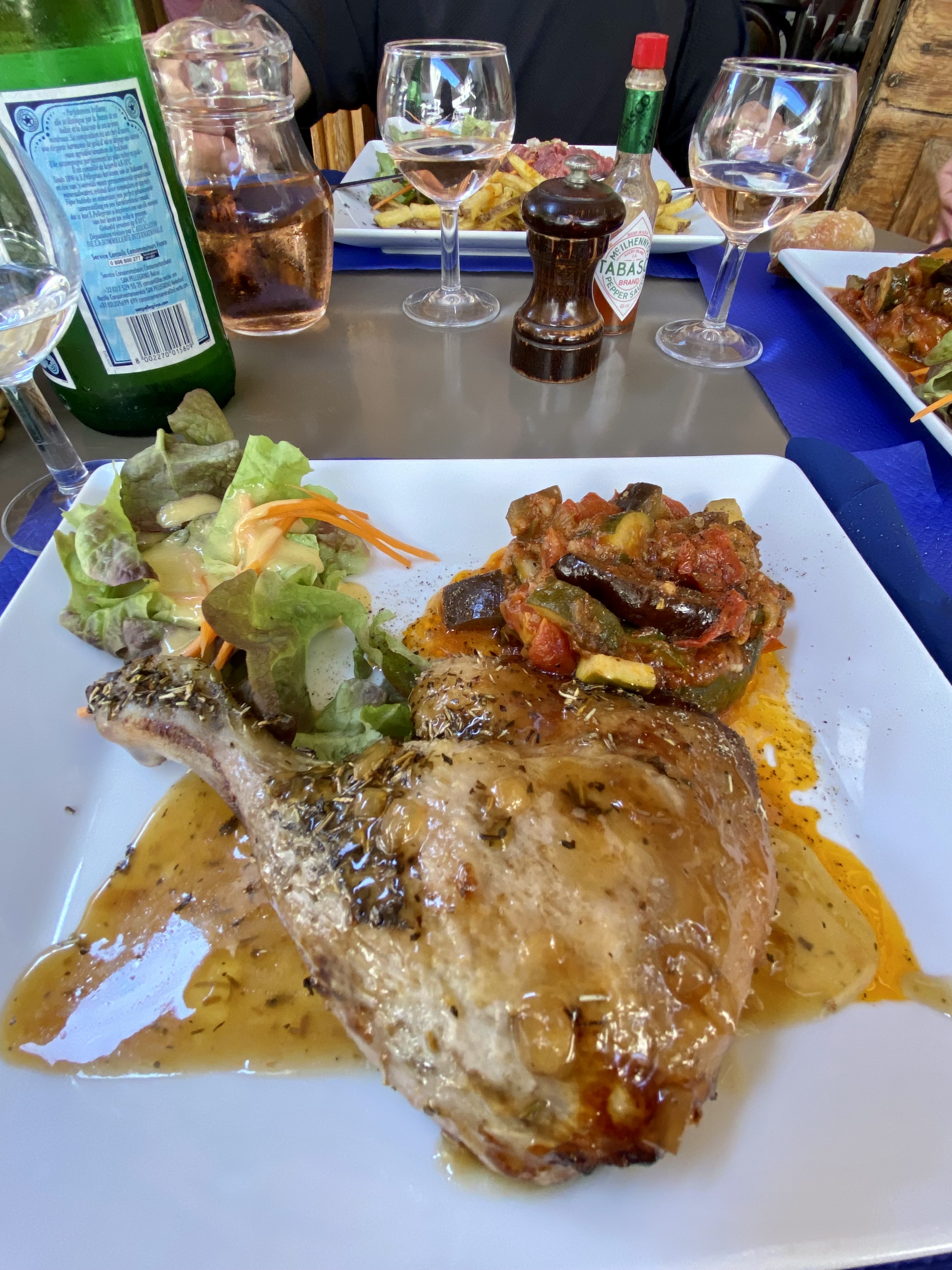Lieu chaleureux avec concert programmé le vendredi soir. Ils nous ont accueillis et nous ont installés dans un endroit calme. Nous avons vraiment très bien mangé, une cuisine maison comme j’avais oublié qu’il en existait : andouillette frites maison salade avec tarte au marron ! Un vrai délice ! De plus, le village de Lourmarin mérite le détour avec ses ruelles qui serpent et contournent le château, sa librairie accueillante dont le libraire fait l’éloge de ses auteurs avec passion. N’oubliez pas de vous rendre sur la tombe de Camus, Bosco …