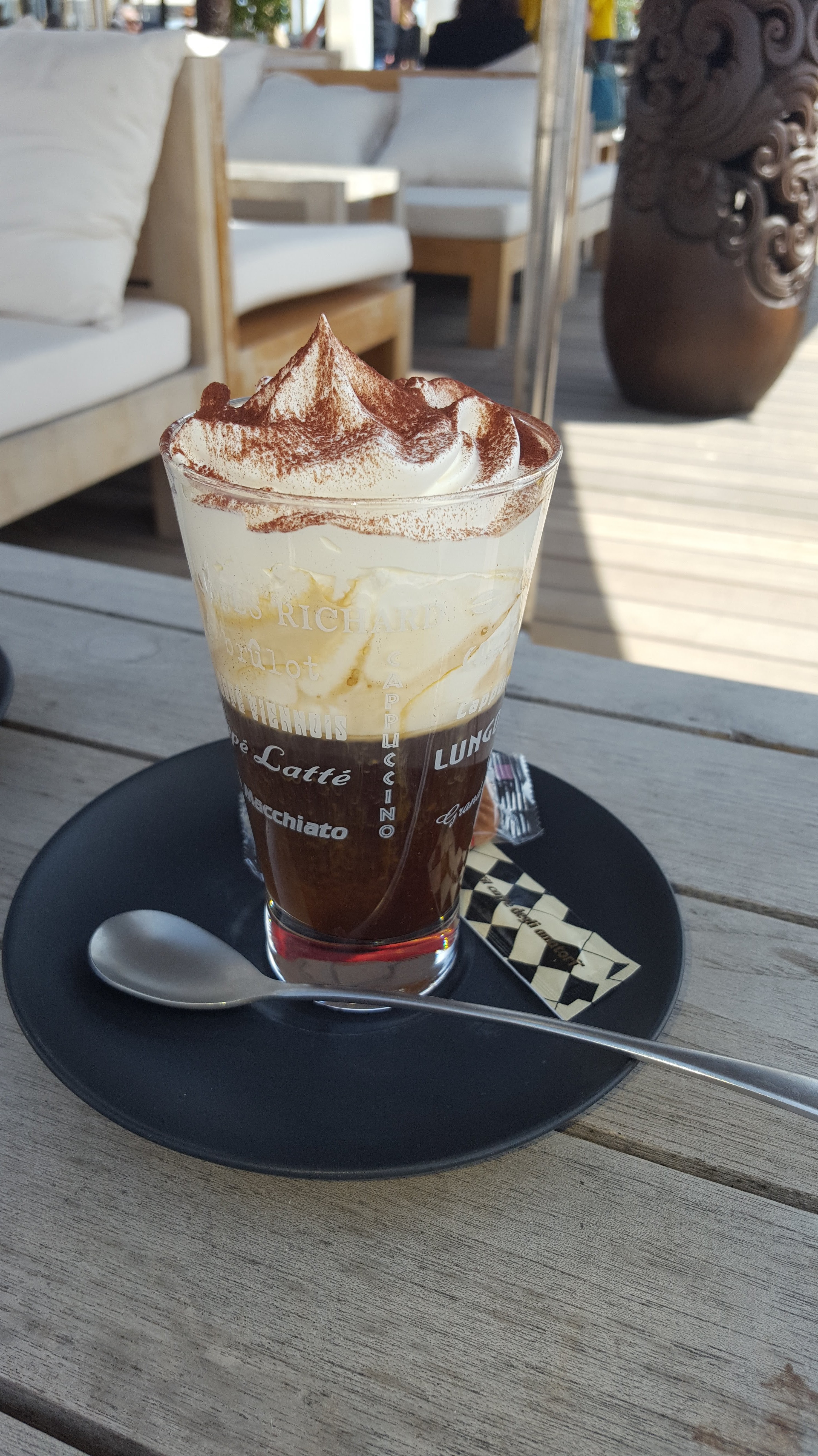 Je n'y ai consommé que du café en terrasse . Très belle terrasse, très bien placée très belle déco,