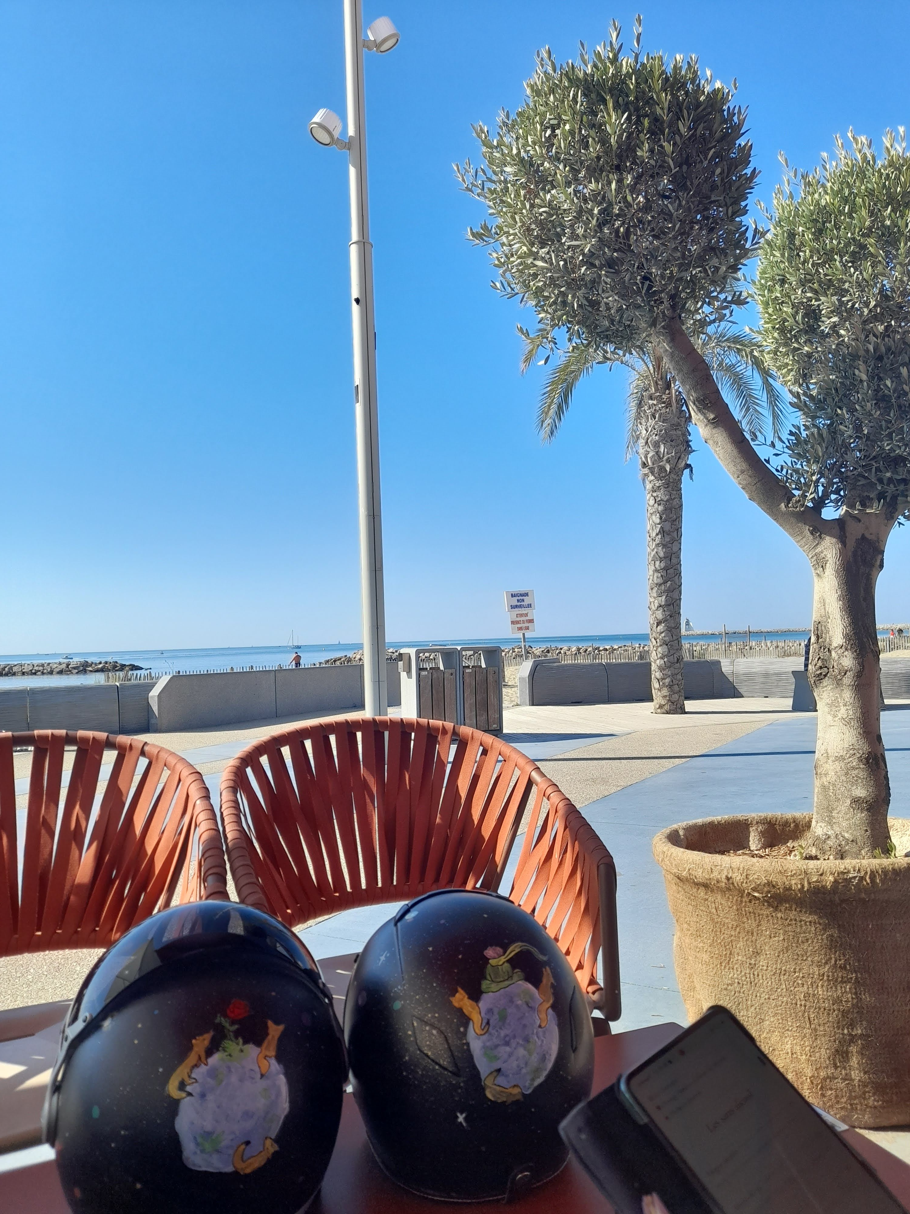 Très bel endroit pour prendre un verre avec vue mer. Une bonne adresse lors de votre passage à la grande motte.