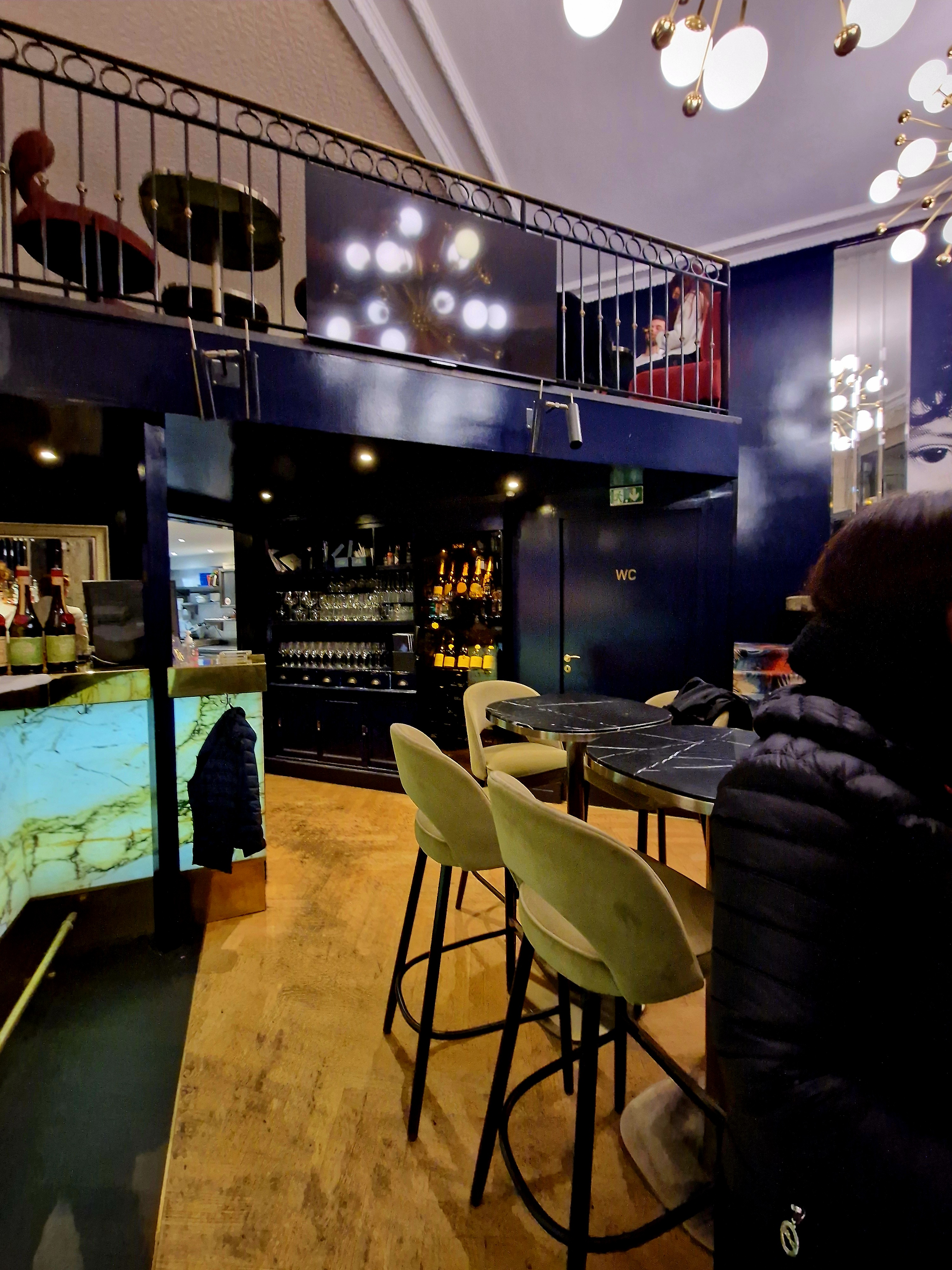 Oui, c'est vrai on sent la qualité.On ressent la fraîcheur. Les produits doivent être choisis avec soin c'est indéniable. Il y a du monde, beaucoup de monde, on est assez proche les uns des autres, c'est bruyant, musique sympa ce vendredi soir, le chanteur reprend des morceaux variés tous connus, y en a pour tous d'ailleurs la clientèle est aussi jeune que mature. J'aurai presque envie que çà se lève un peu pour bouger sur la musique qui était assez festive, que nenni....On sirote le cocktail au prix un peu trop élevé..Appréciez vraiment les quelques frites proposées, excellentes et à 9 euros la petite portion. Attention, j'ai passé une bonne soirée ! Mon spritz était noyé de glaçons, hum frustrant... Le vin rouge excellent mais encore, le prix ....je ne rajouterai rien.... Le cadre est clean, déco pas à mon goût, baroque trop vu. Il y a du professionnalisme dans l'air. Serveuses hyper patientes et souriantes. Tout cela est subjectif. Je ressentais de la joie dans l'air et çà c'est pas mal ! The place to be...pour certains....