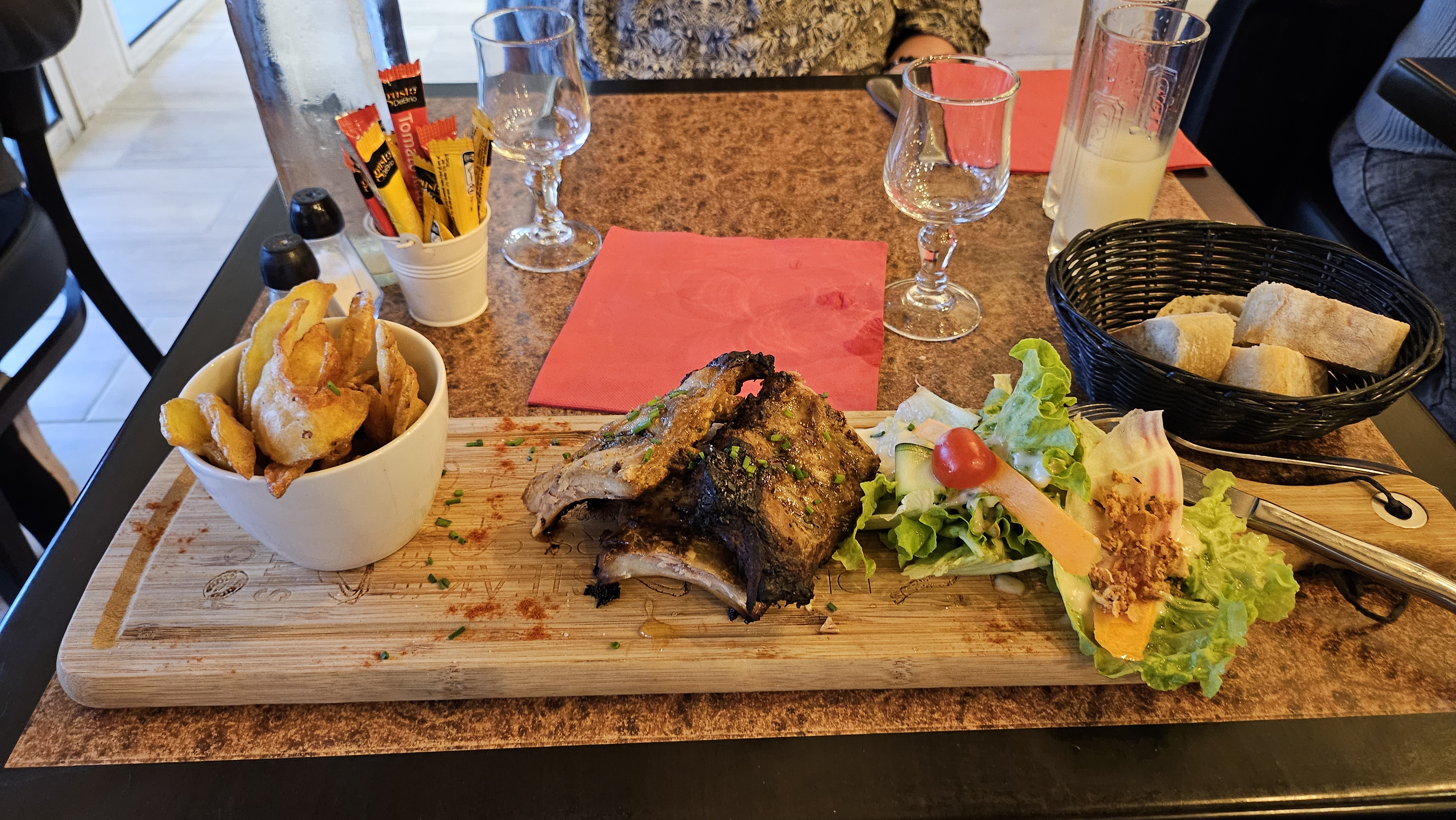 Nous avons probablement trouvé les frites les plus savoureuses de tous les temps ici 😍😍 mais la nourriture ici est généralement très savoureuse et recommandée ! Nous avons eu un magret de canard au miel et un steak de thon sauce chorizo, délicieux !