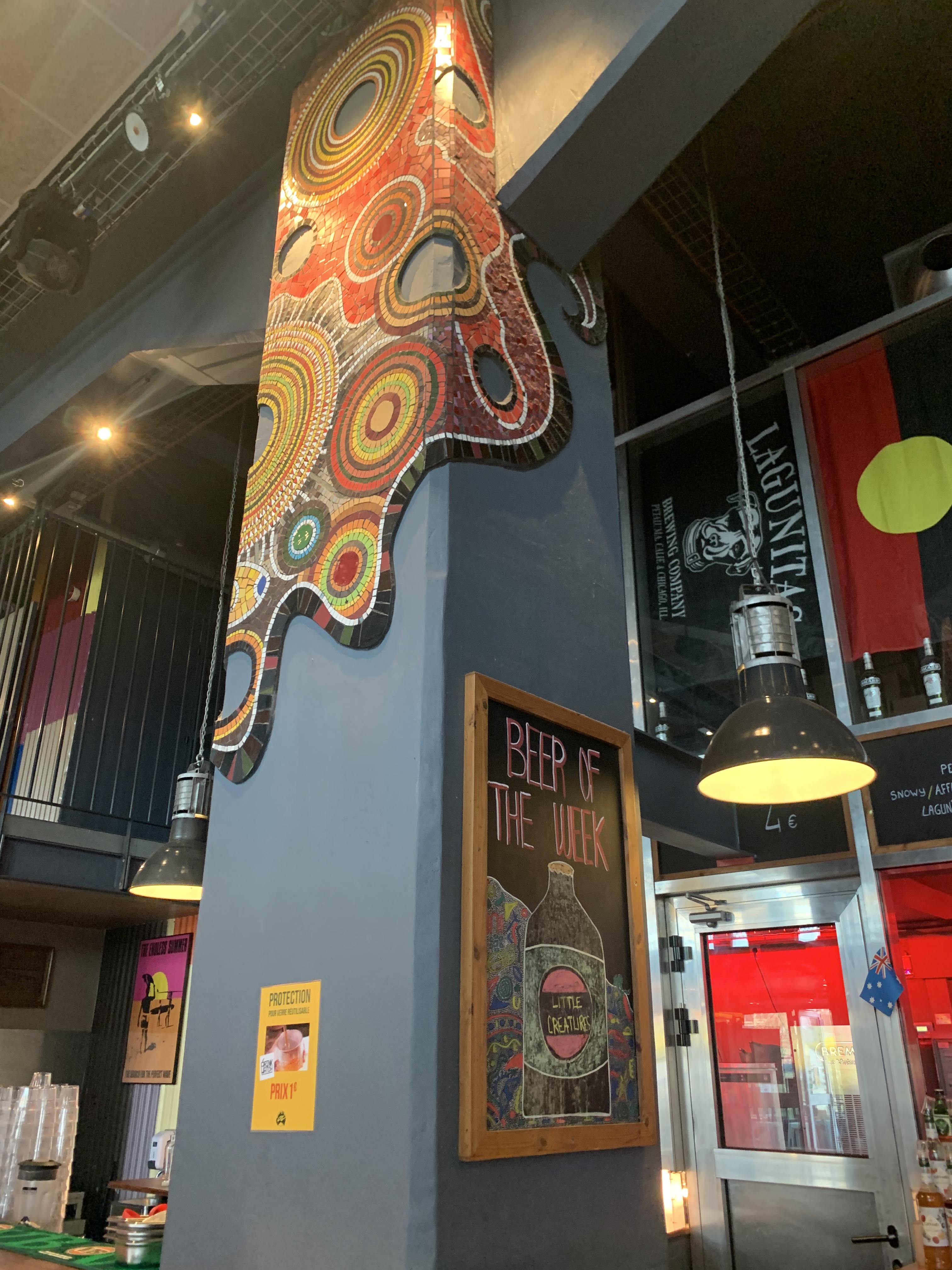 un bar avec une ambiance australienne originale et une carte des boissons variée. Cependant, la musique peut être un peu trop variée, avec des changements fréquents de style musical qui peuvent affecter l'ambiance. Le DJ passe d'un genre musical à l'autre sans réelle cohérence, ce qui peut parfois perturber l'expérience globale du bar.