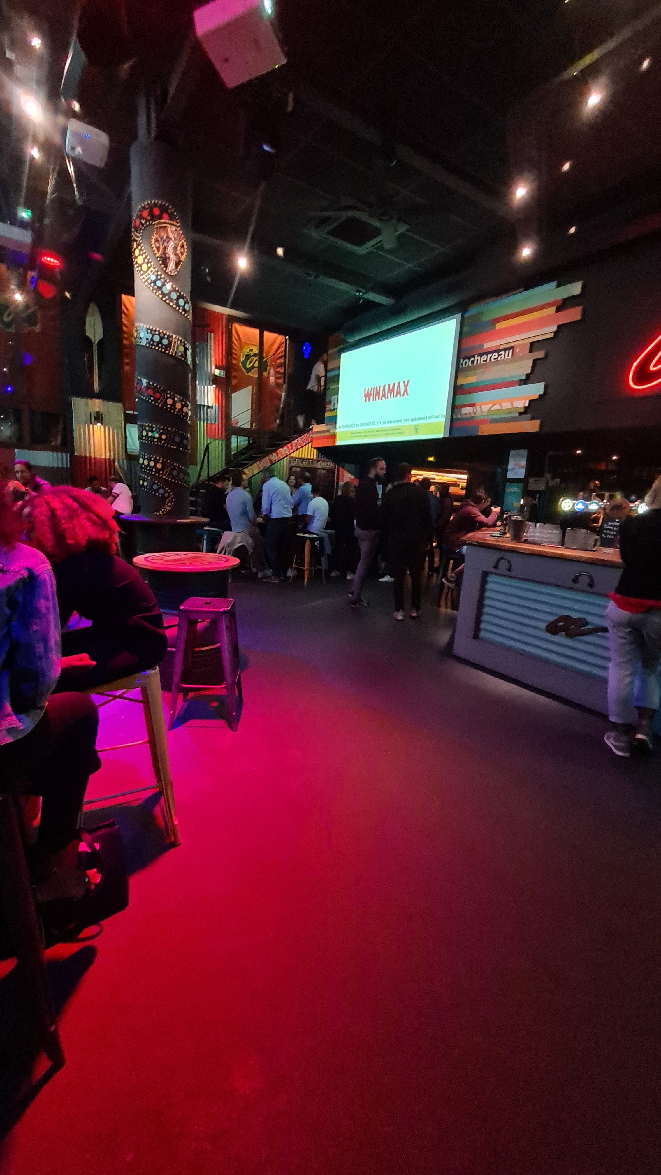 Très sympa pour regarder un match de sport. Bel espace. Musique de m*** en revanche, génération Tik tok soit accélération de musique de tube connu sans intérêt pour ma part.