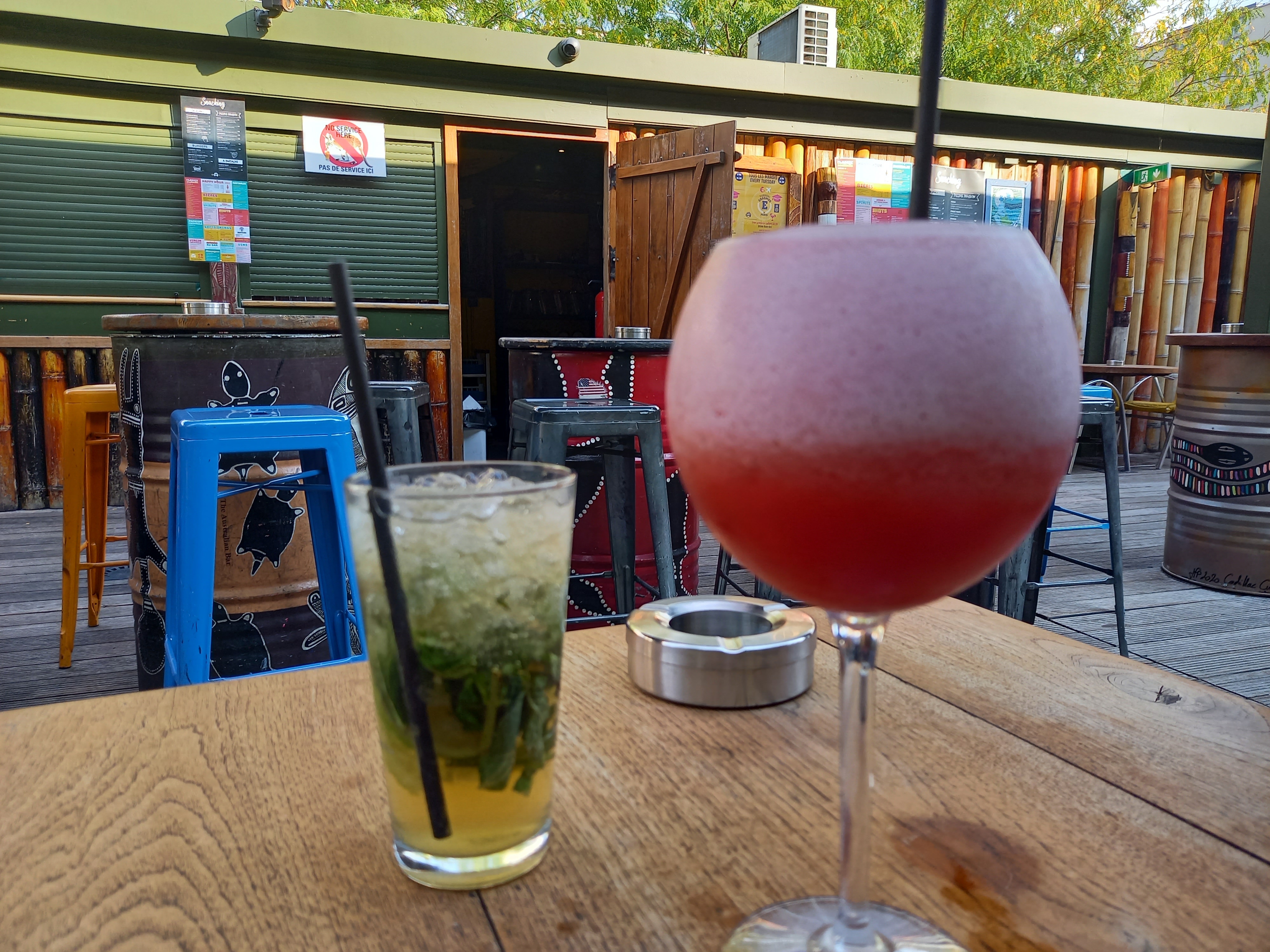 Pas mon genre de musique mais terrasse extérieure chill et agréable. Malheureusement soirée gachee par des jeunes irrespectueux qui ne savent pas boire et manque de respect. Mojito par toujours bien servi