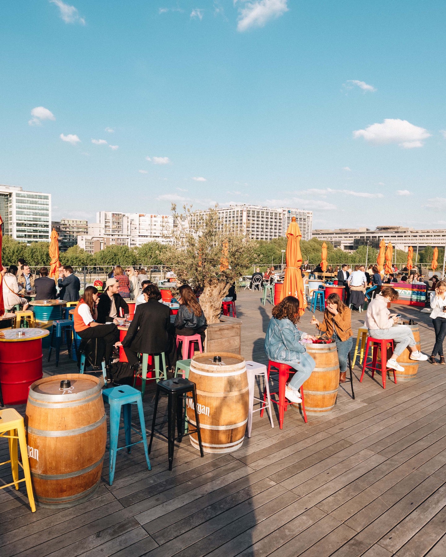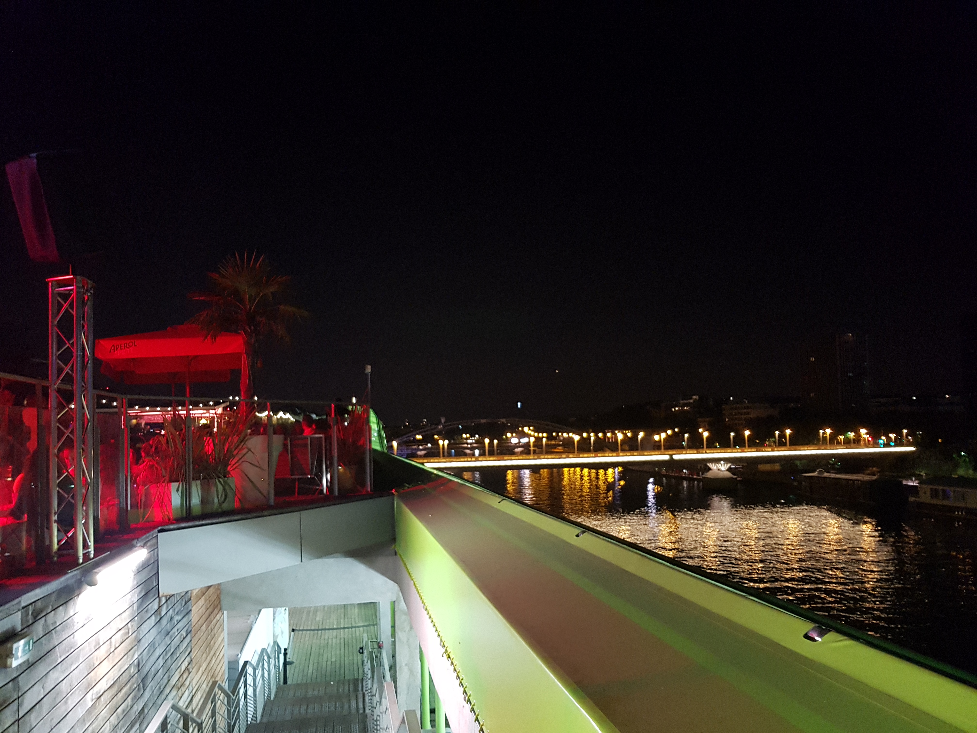 Rooftop super sympa, musique d'ambiance, de quoi se restaurer tout en profitant de la superbe vue sur la Seine.