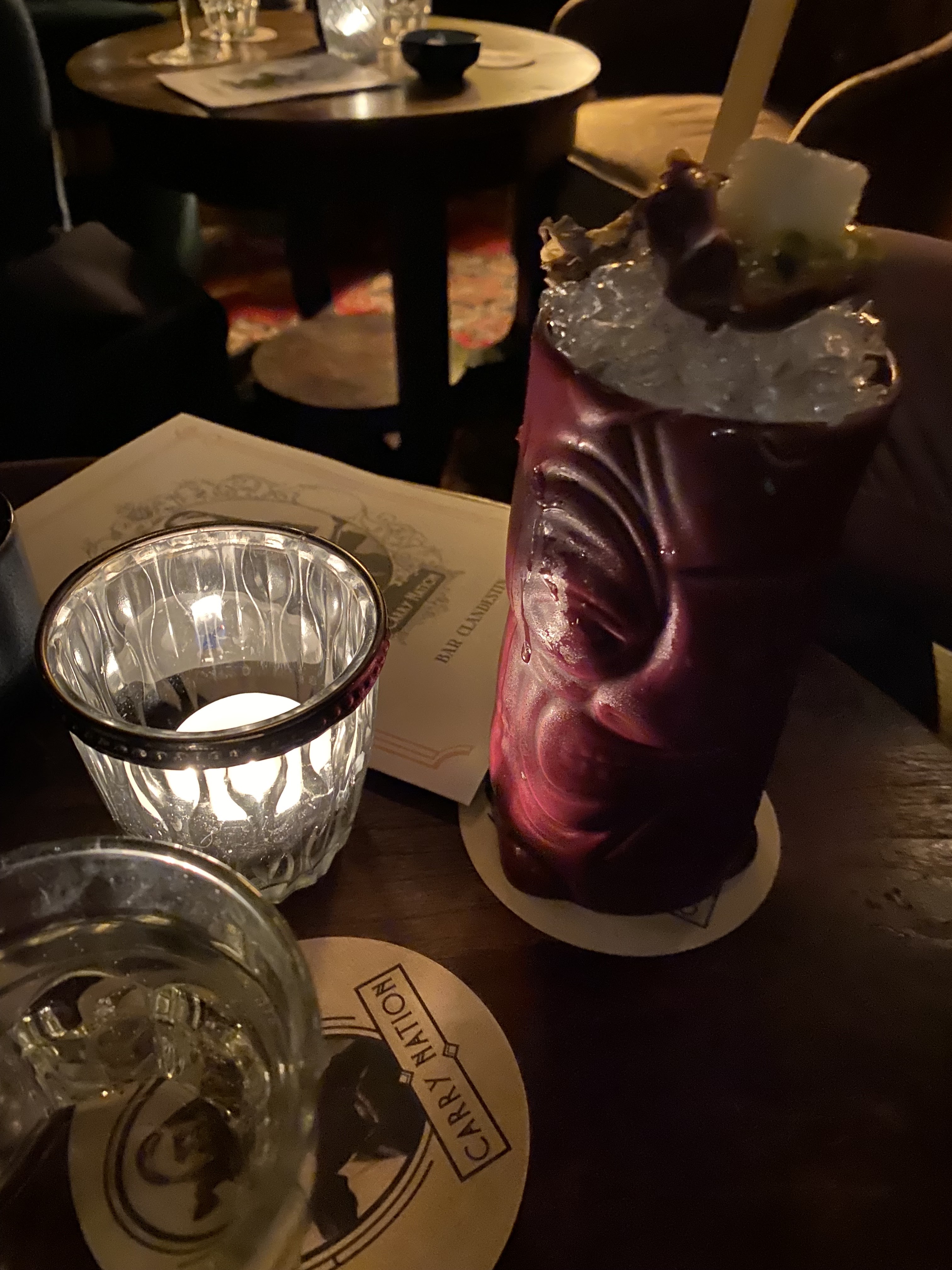 Les meilleurs cocktails que j'ai goûté dans ma vie, atmosphère élégante, serveurs très attirant et incroyablement polies. J'aime pas sortir, j'aime pas les gens, j'aime pas me saouler, je suis une personne qui sort seulement pour le randonnée, vélo et course. Mais Carry Nation est une de les seules places que j'ai connu dans ma vie ou je me sentais bien, seule avec mon livre et un peu de conversation avec les serveurs. Normalement je suis anxieuse en public, mais pas ici. FORTEMENT recommandé