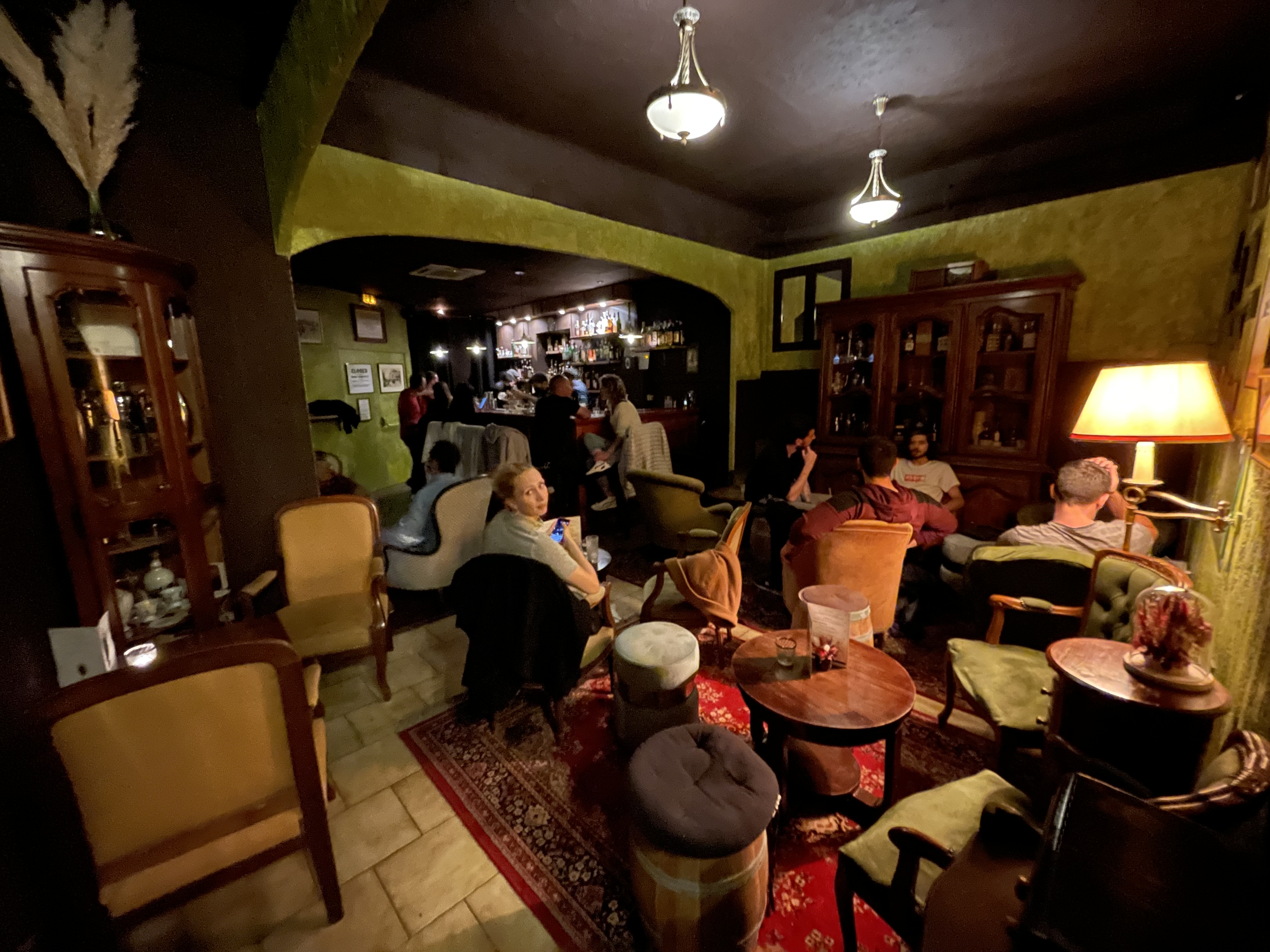 Un beau bar, confortable et caché (comme on peut s'y attendre) de la rue. Une fois que vous l'avez trouvé, le service est sans égal (notre serveur était excellent et nous a proposé de traduire tout ce que nous ne comprenions pas en anglais. Il avait clairement une passion pour le métier et l'endroit). Les cocktails sont vraiment uniques, utilisant des liqueurs et des spiritueux faits maison. Vraiment super petit endroit !