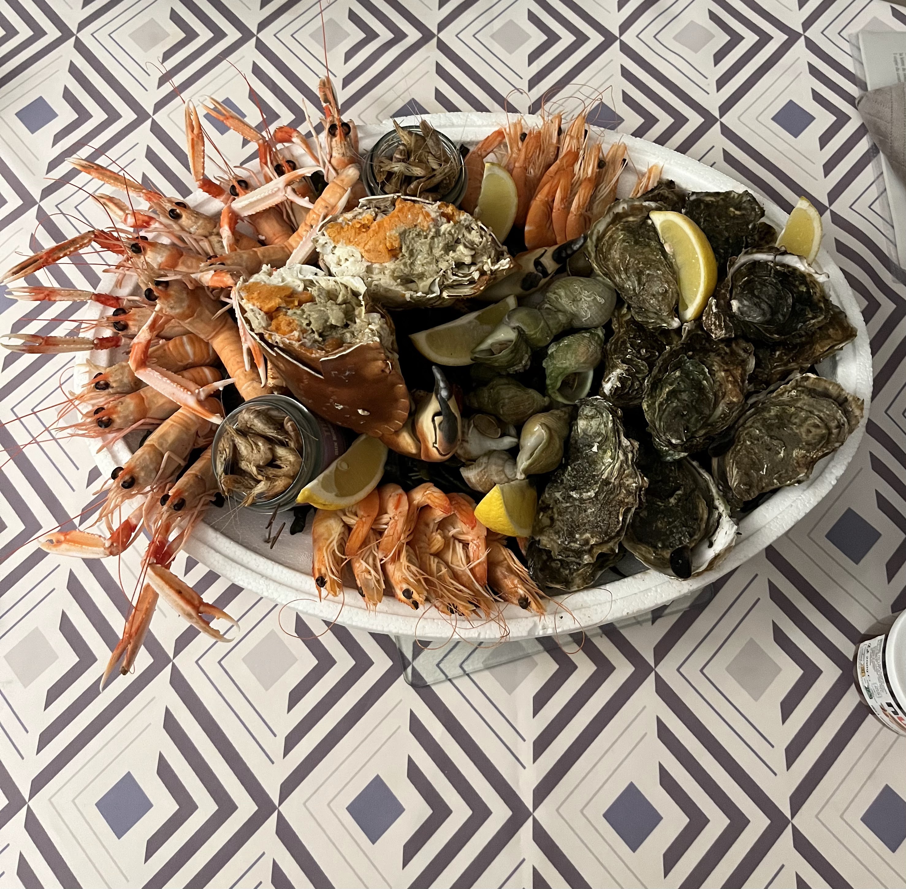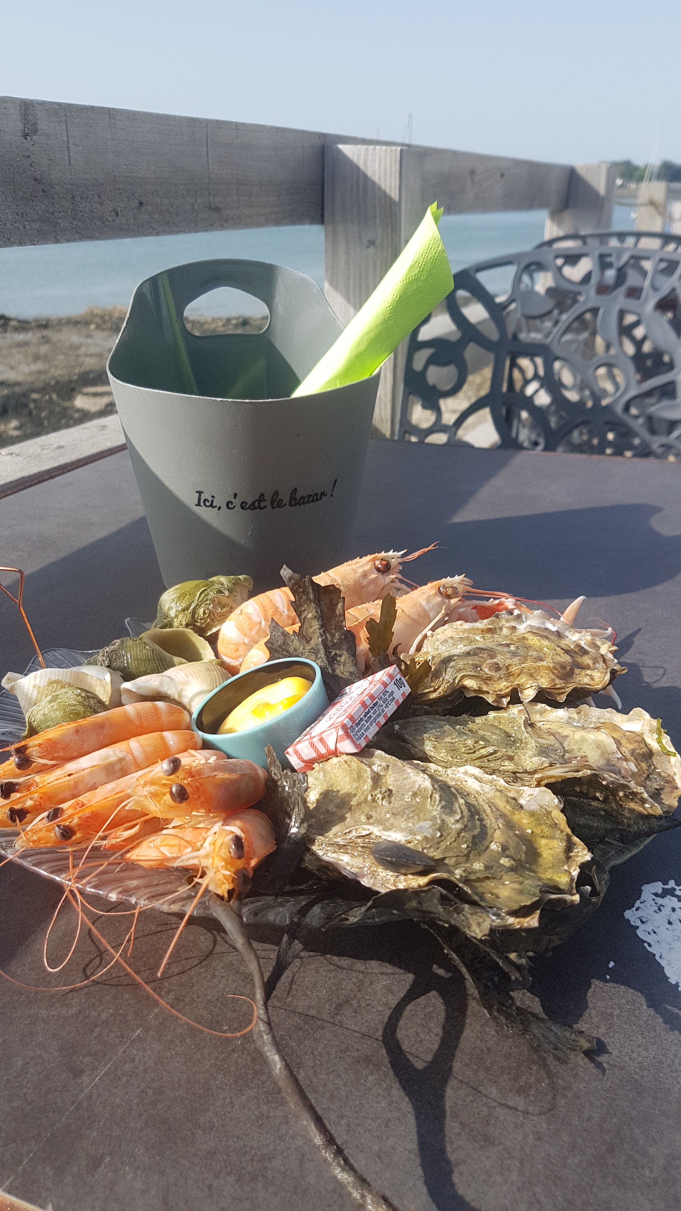 Mitigé. Nous sommes arrivés à 9 pour déjeuner et nous avons pris des crevettes, langoustines, huîtres et de la terrine. Nous avons malheureusement attendu longtemps nos plats alors qu’il n’y avait pas de raison évidente (crevettes pas décortiquées, huîtres à peine ouvertes ??). Nous n’avons pas eu d’assiette pour manger (cadavres de crustacés sur la table) et nous avons subi une pénurie de mayonnaise au milieu du repas. Plus de mayonnaise pour un restaurant de fruits de mer, c’est tout de même dommage. Qui plus est, la mayonnaise était industrielle. Cependant, le cadre était très sympa et les fruits de mer étaient bons. Agréable mais soyez au courant que ça n’est pas un restaurant traditionnel.