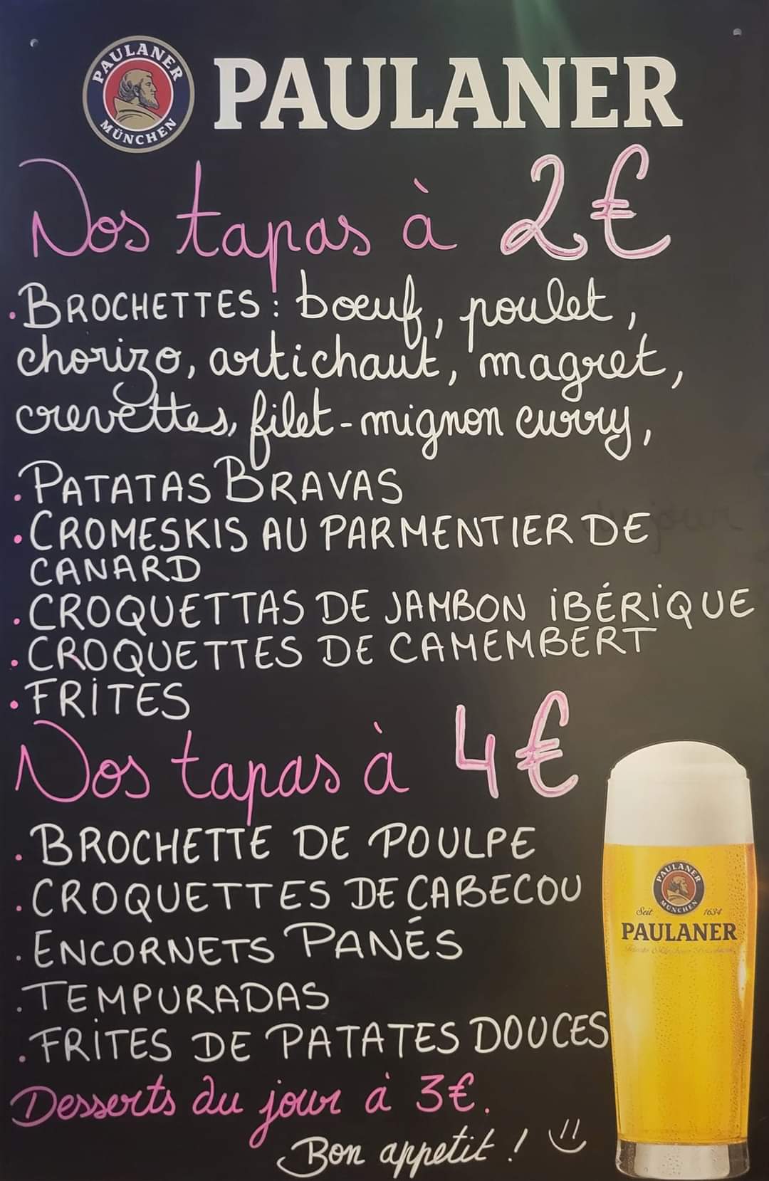 Nouveaux patrons adorables, très attentionnés et à l’écoute de leurs clients. Délicieux repas et tapas.Tarif très compétitif en plus des gestes commerciaux inattendus. Grand parking. Pas d’étage. Accessible PMR