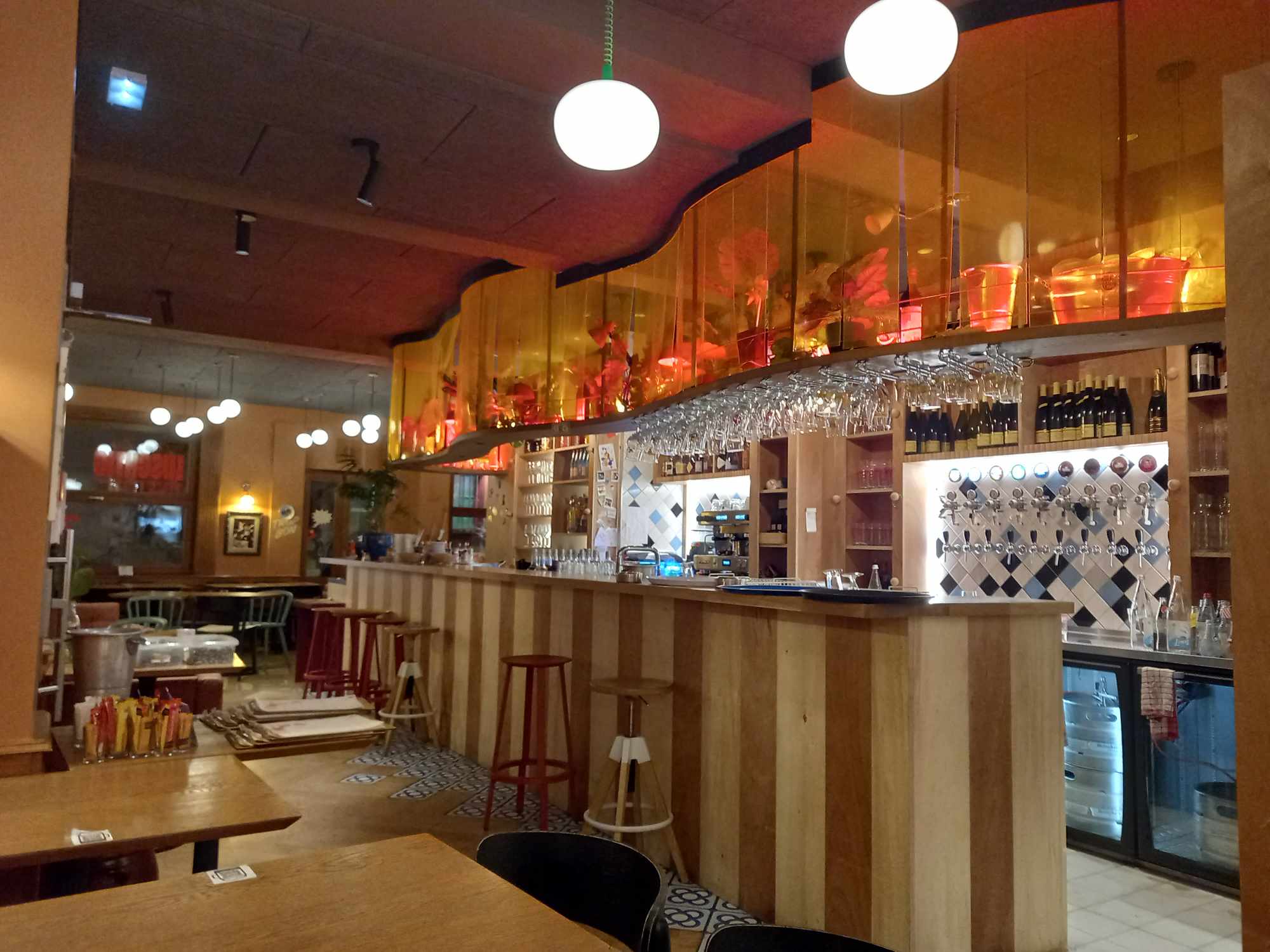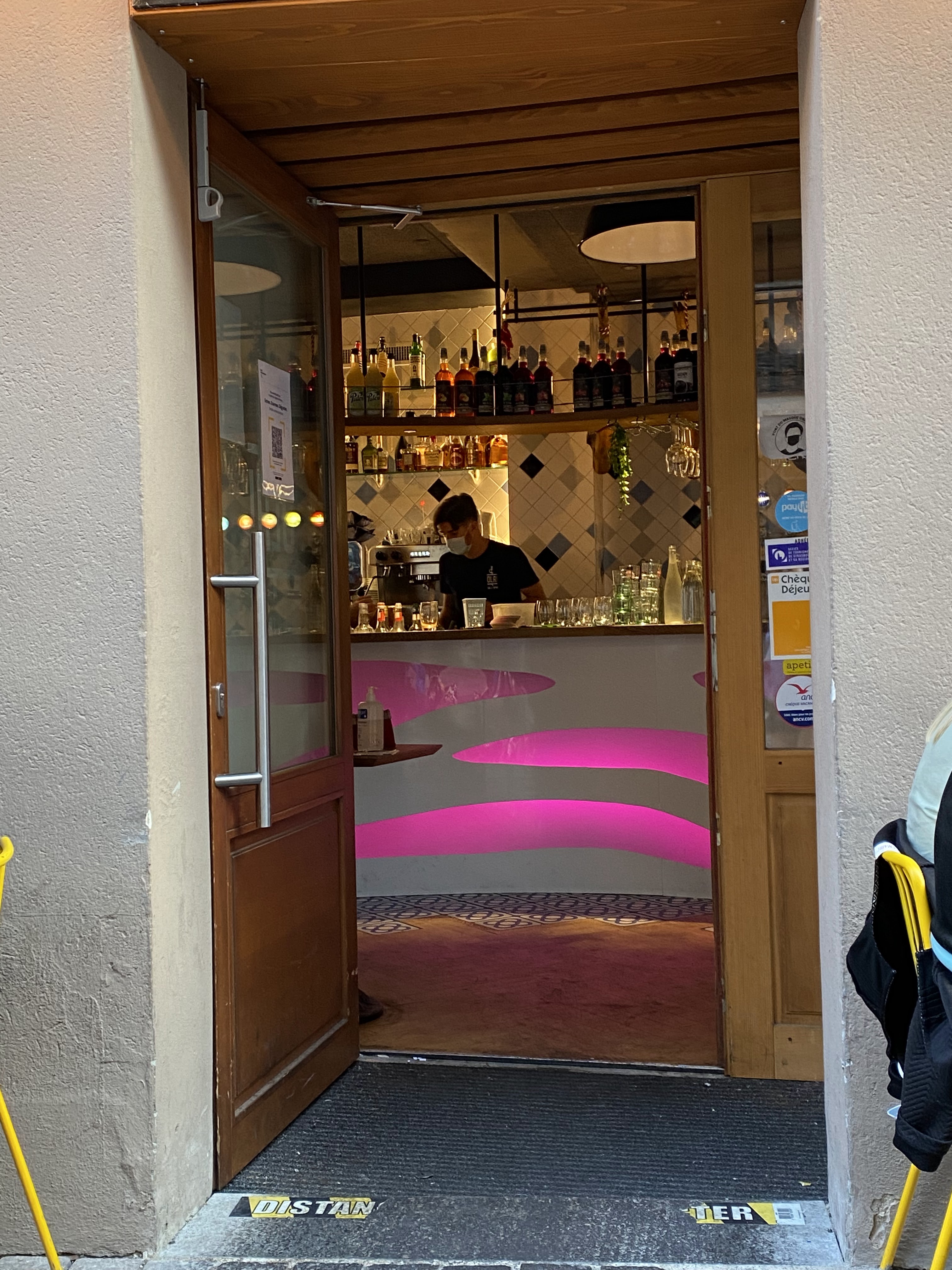 Bar sympa, bien décore, les chaises sont confortables, et tout est coloré. Nous sommes allées boire un verre et tout était très correct. Le nouveau serveur était très sympathique !