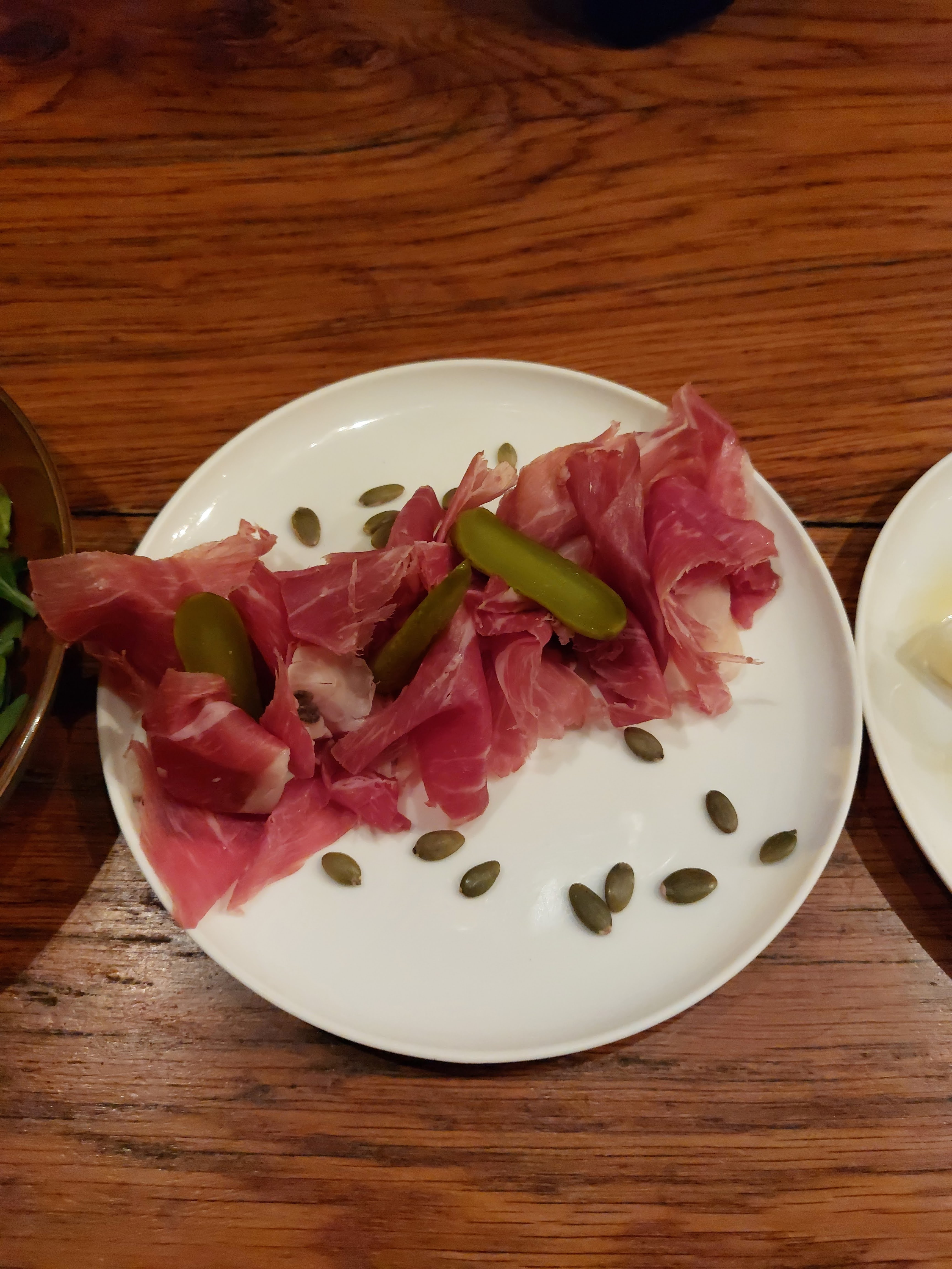 1ère fois et soirée pleine de saveurs, en même temps que la simplicité y est, les produits nous ont fait voyager dans plusieurs terres à la fois. Cadre très agréable et serveurs délicats expliquant l’histoire de chacun des produits (charcuterie, vins, fromage...). Le pain très apprécié aussi. 5 étoiles bien méritées !!!