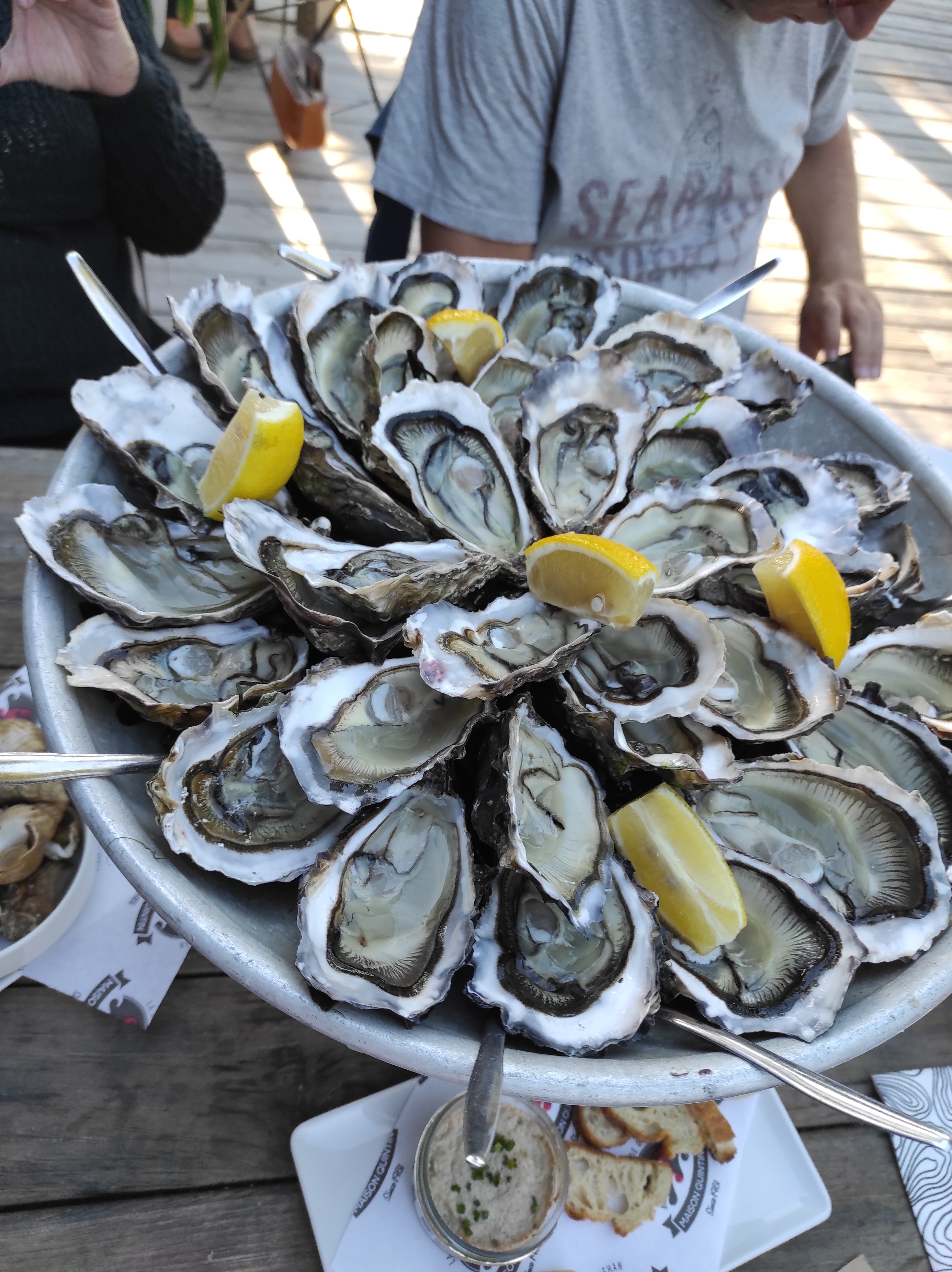 Vue magnifique depuis les terrasses, un moment à part, huîtres délicieuses,
