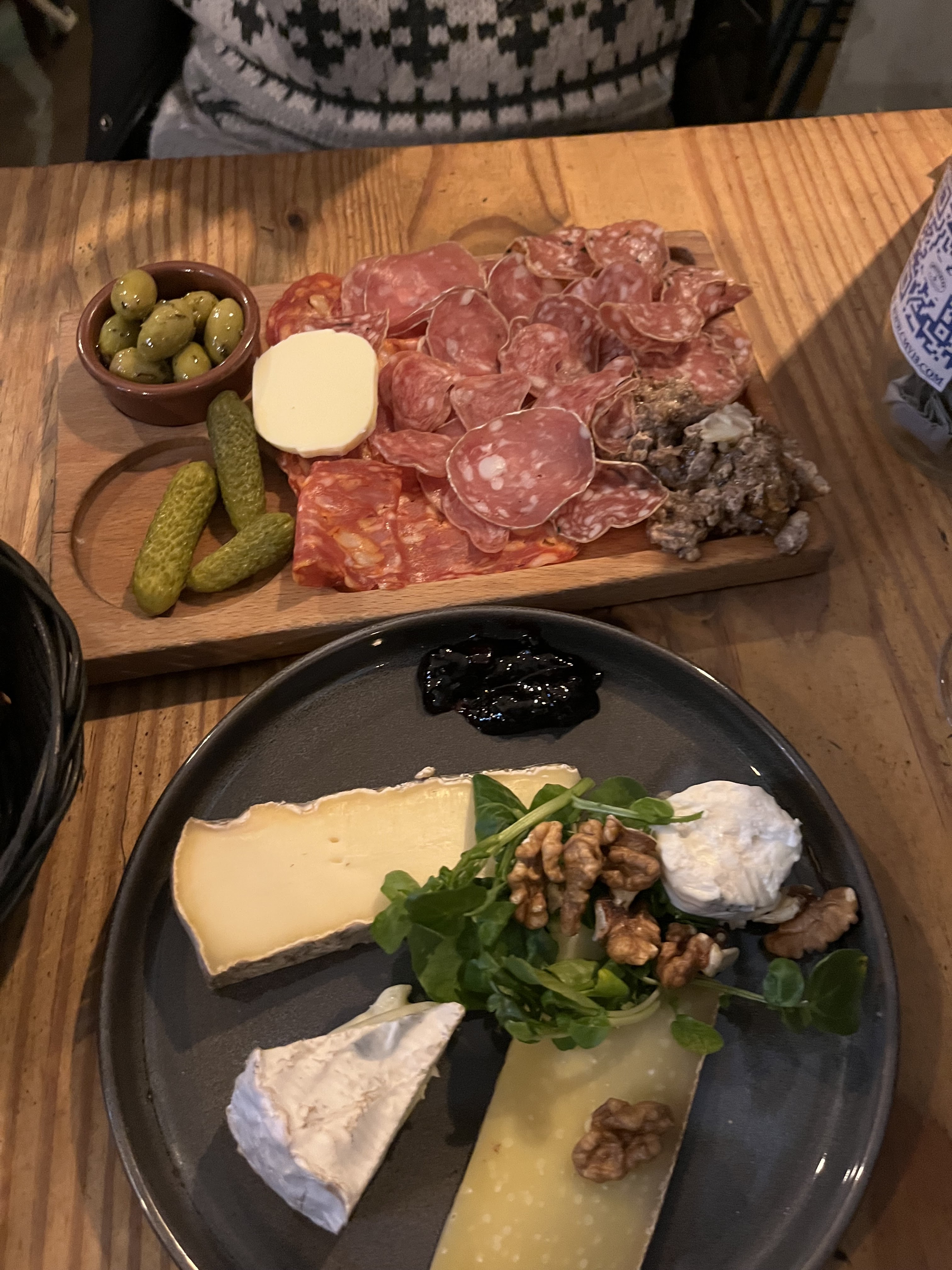 Des planches charcuterie/fromages de qualité enfin ! Et le saint felicien truffé rôti, comment dire 🫠😋