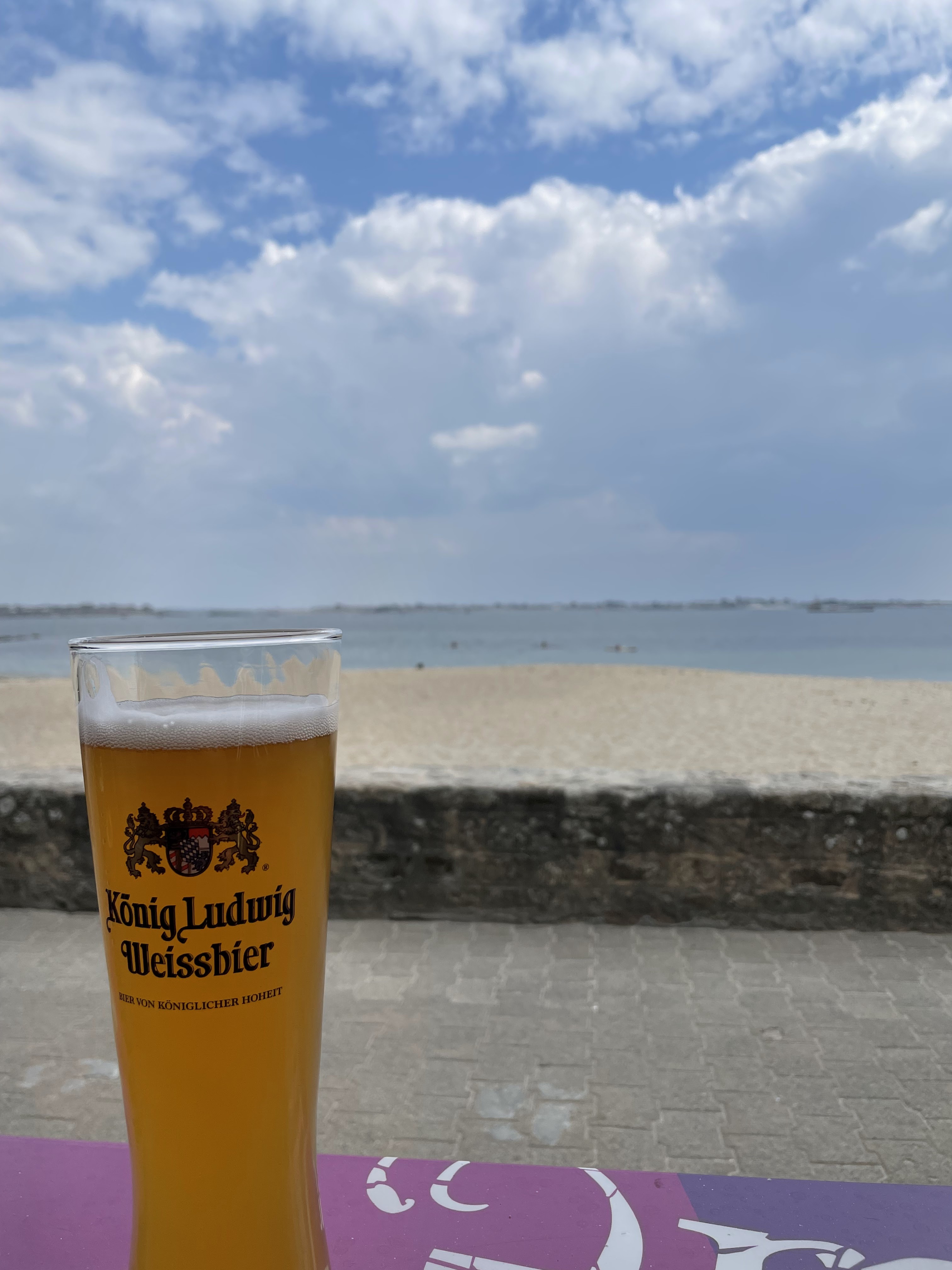 Le rêve cette terrasse de bord de plage. Siroter un verre face à la citadelle de Port Louis, grignoter une pizza pendant que les enfants jouent sur le sable, regarder le soleil se coucher sur la mer...moment de détente assuré