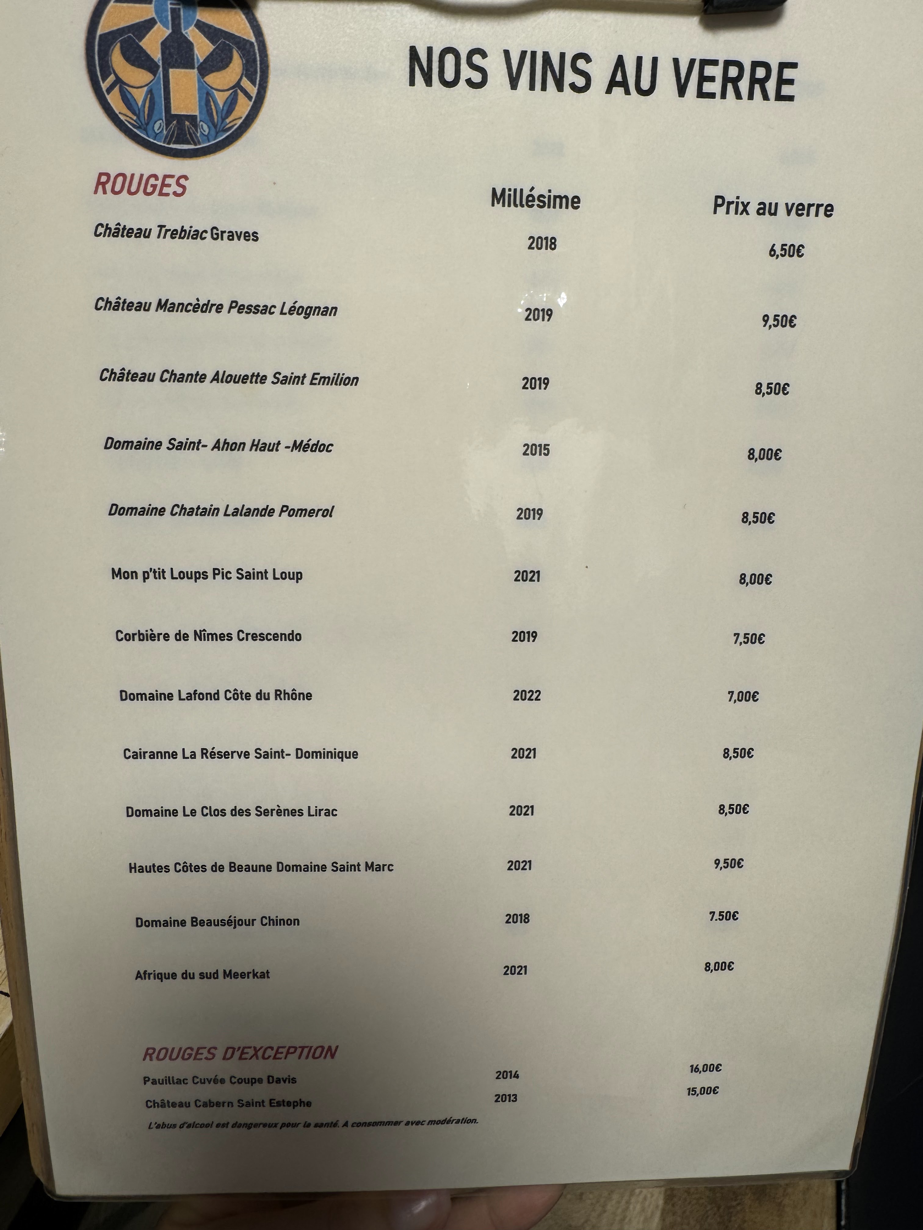 Bon vin, excellent service. Des gens très sympathiques. Nous avons passé un bon moment!