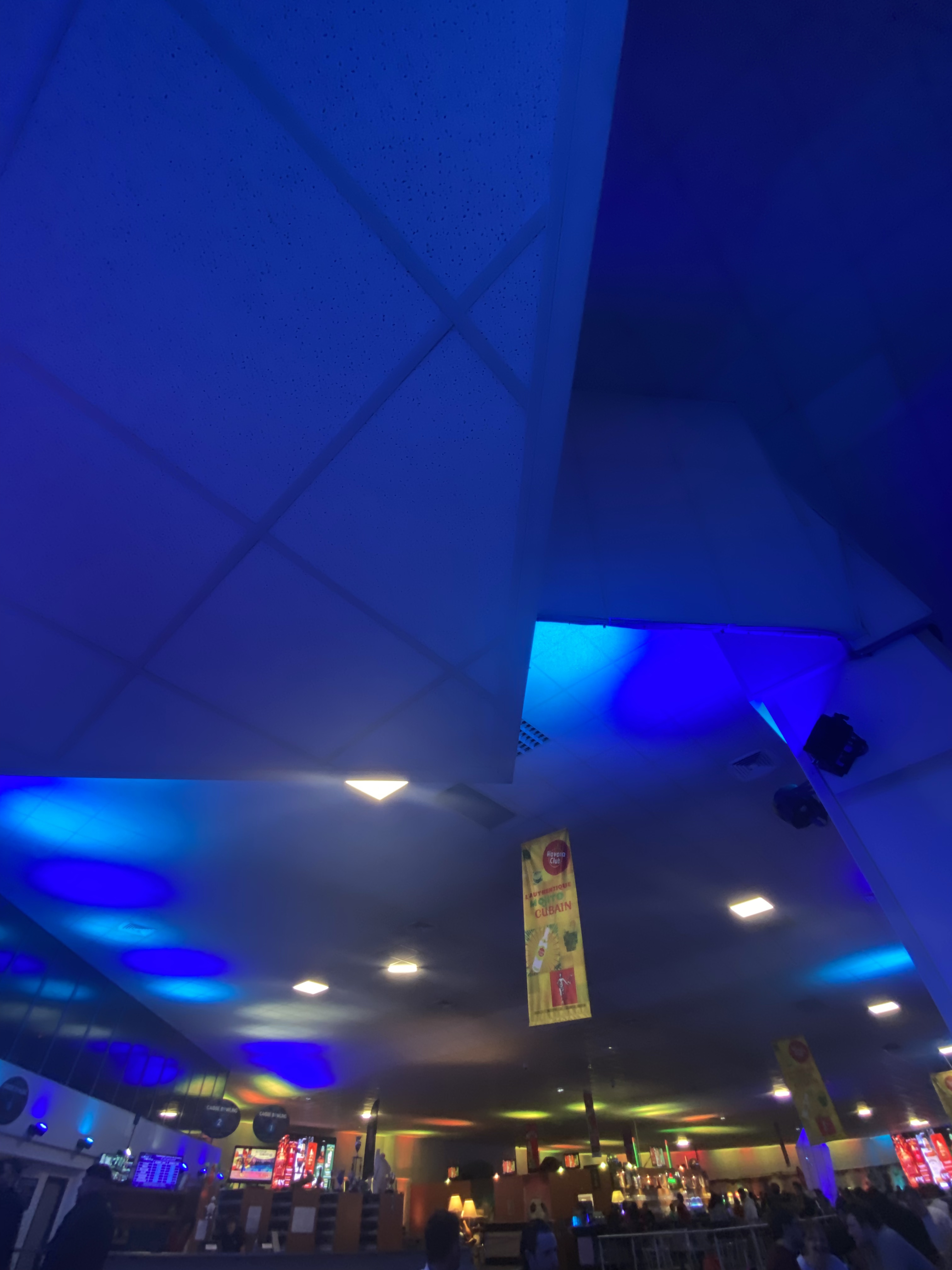 Une première pour ma part, c est très grand, de nombreuses pistes de bowling devenant luminescentes à partir d une certaine heure de la soiree. Au niveau du bowling, beaucoup de choses manquent comme les ecrans tactiles pour y ajouter un nom rigolo voire de quoi se prendre en photo en totale autonomie, pas de vitesse indiquée, un grain de folie manque cruellement à ce niveau. La restauration est basique, mieux vaut opter pour la pizza tartiflette, plus goûteuse que la tarte flambee sans goût. Les points positifs sont le prix des parties, la musique, le côté fluo des pistes à une certaine heure, le cote arrangeant pour le règlement des pistes de bowling, l amabilité de la jeune serveuse, les bières.