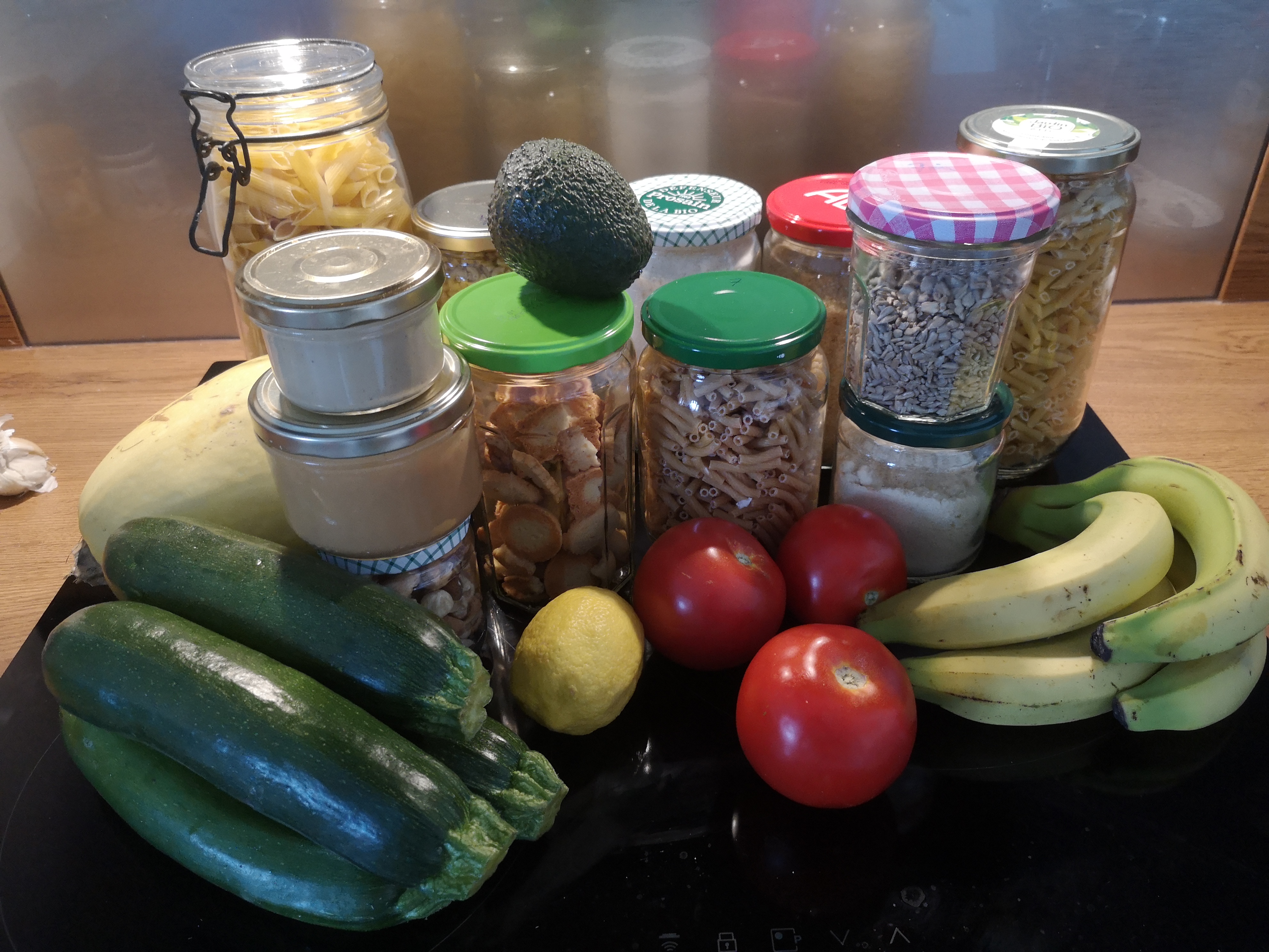 Super magasin, de très bons conseils comme toujours ! Mon panier pour 28e avec pâtes, farine, sucre, poudre d'amande, gâteaux apéro, légumes.. Et purées de cacahuète et de sésame à découvrir ☺️
