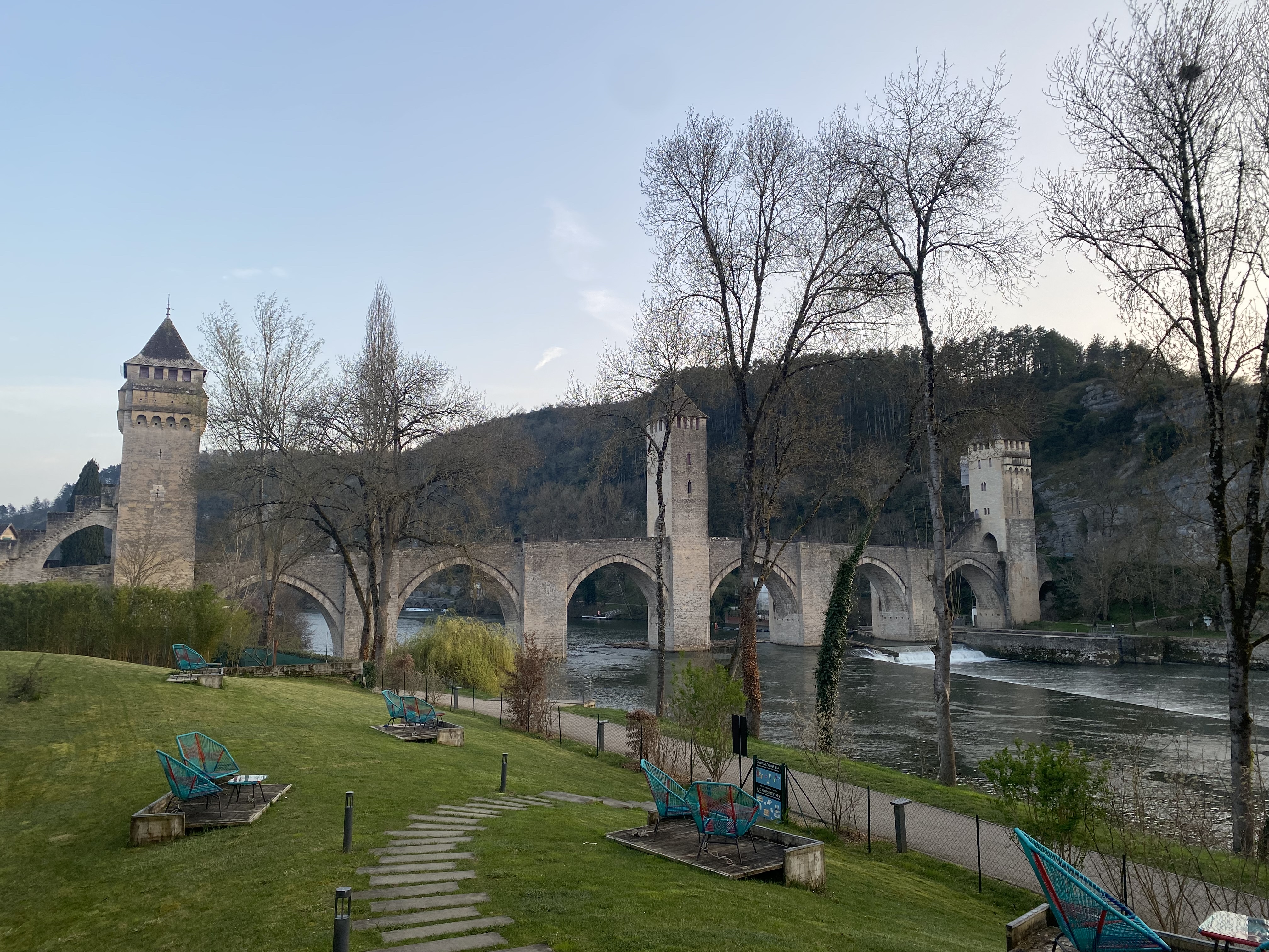 Mon train a été annulé et j'ai trouvé ce bar grâce à une recherche rapide sur Google. J'étais sceptique à cause du manque d'avis mais j'ai été époustouflé à mon arrivée ! A 6 mn à pied de la gare (train). Tout le monde était très gentil et accueillant. Bon vin local et nourriture fraîche. Belle vue sur le Pont Valentré depuis la terrasse.
