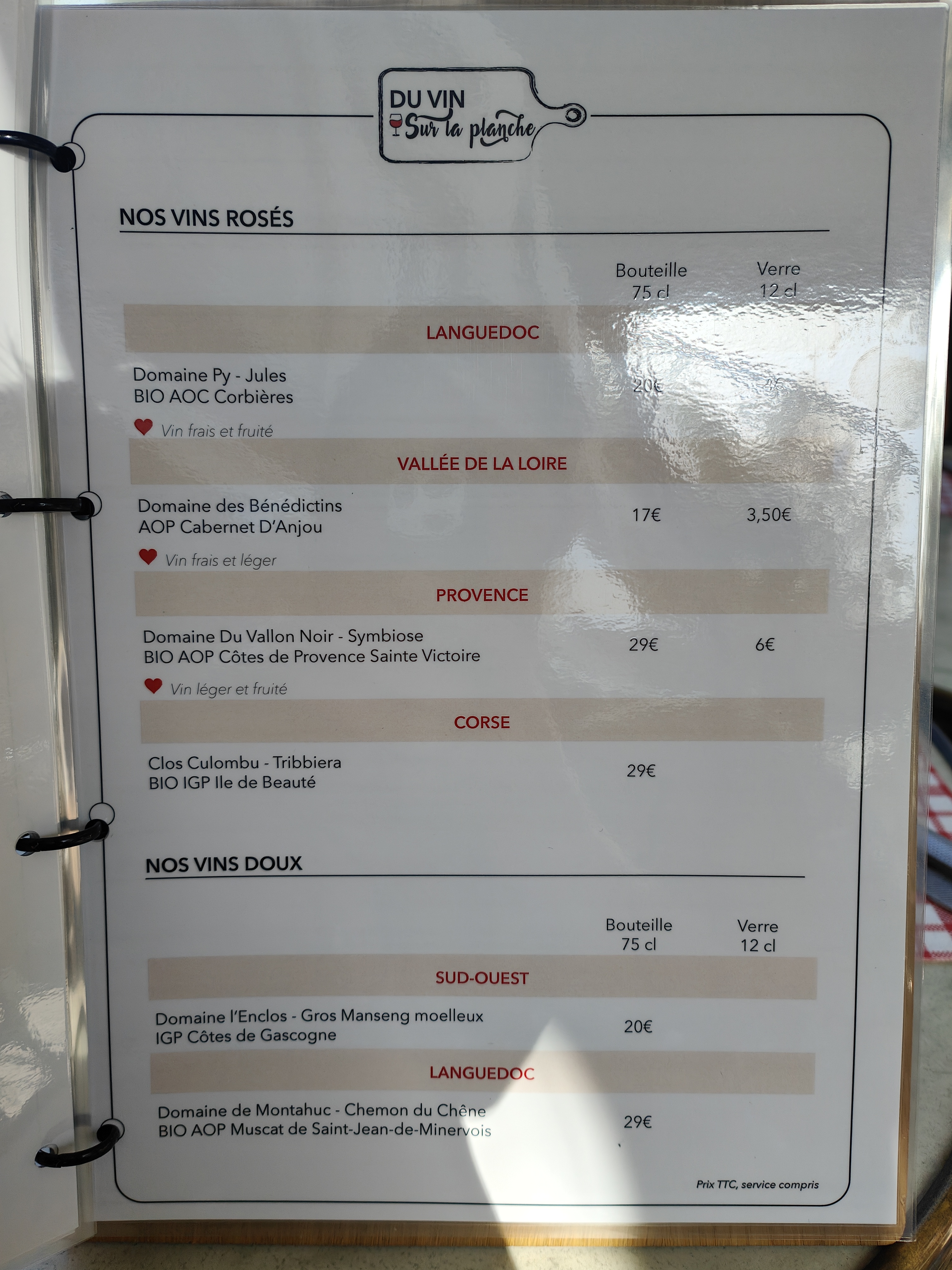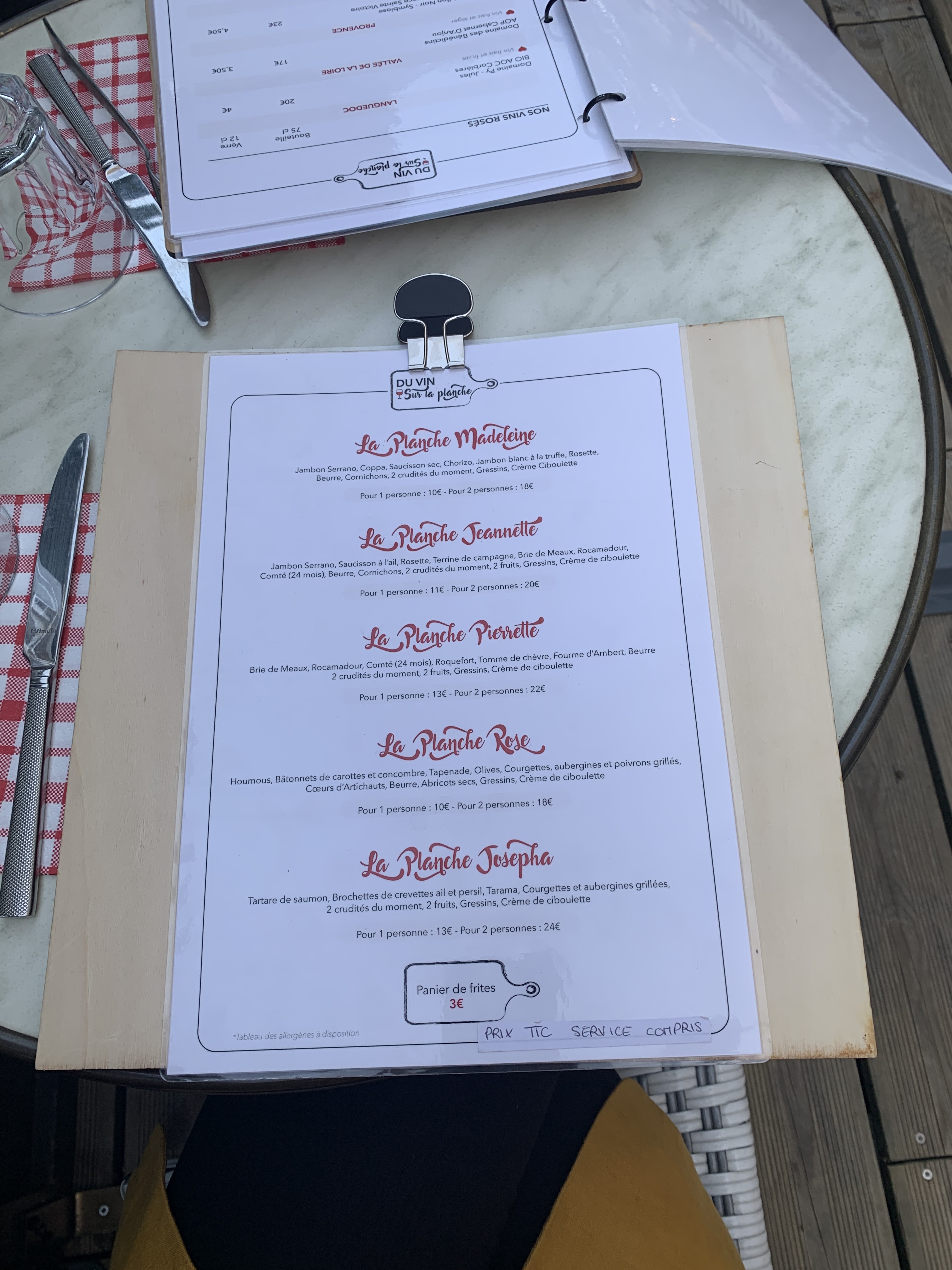 Au Top, vin, planche, mousse au Chocolat !!! Merci