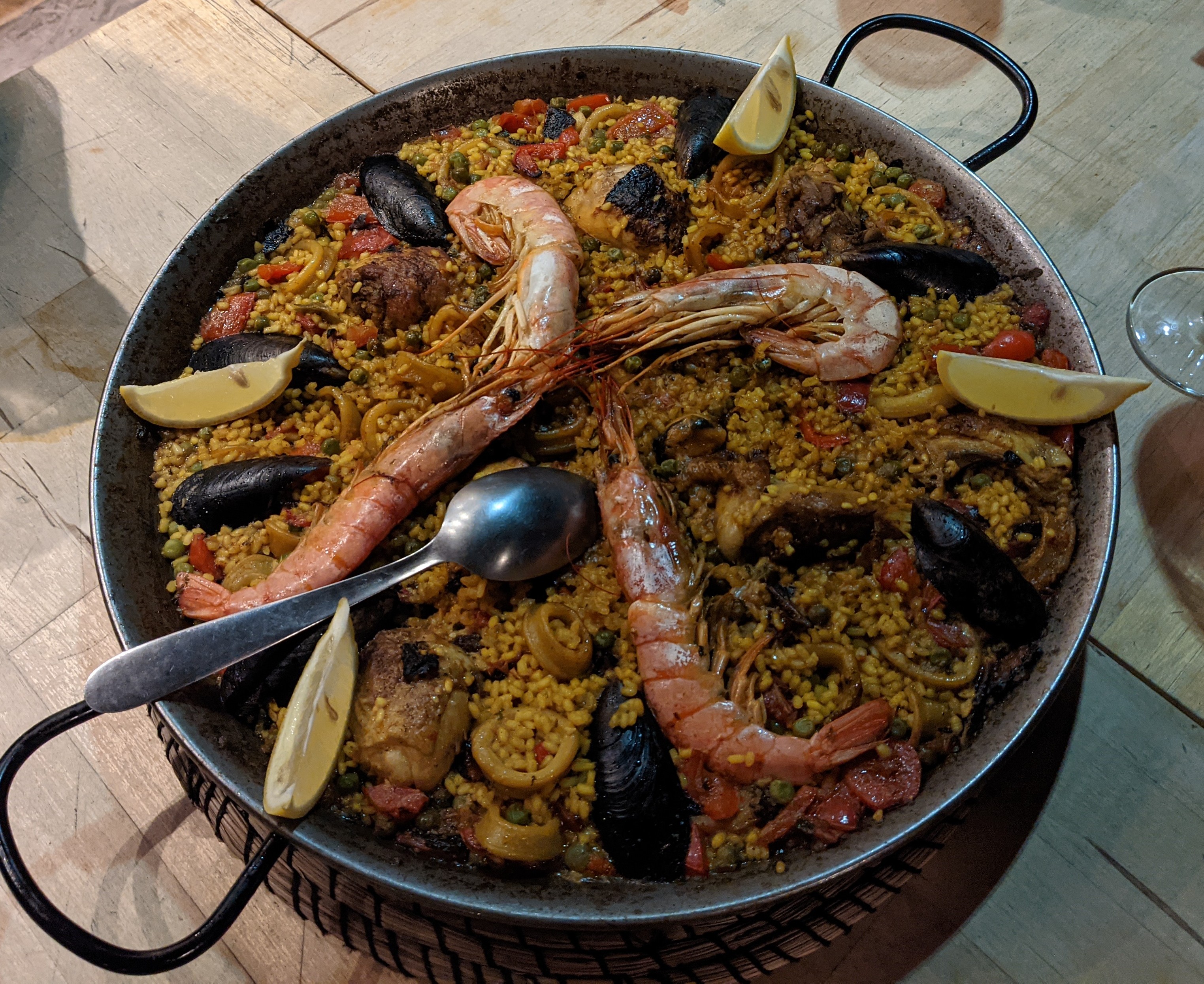 Réservation perdu ainsi que la commande d'une paella, paella moyenne un peu brûler, le verre pour mon coca sentait le whisky, sinon le personnel est sympa