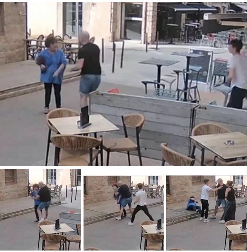 Le patron du bar, ou celui qui se revendique comme tel, est un ancien gendarme qui ne trouve pas mieux à faire que d'agresser une personne âgée qui passait dans la rue!