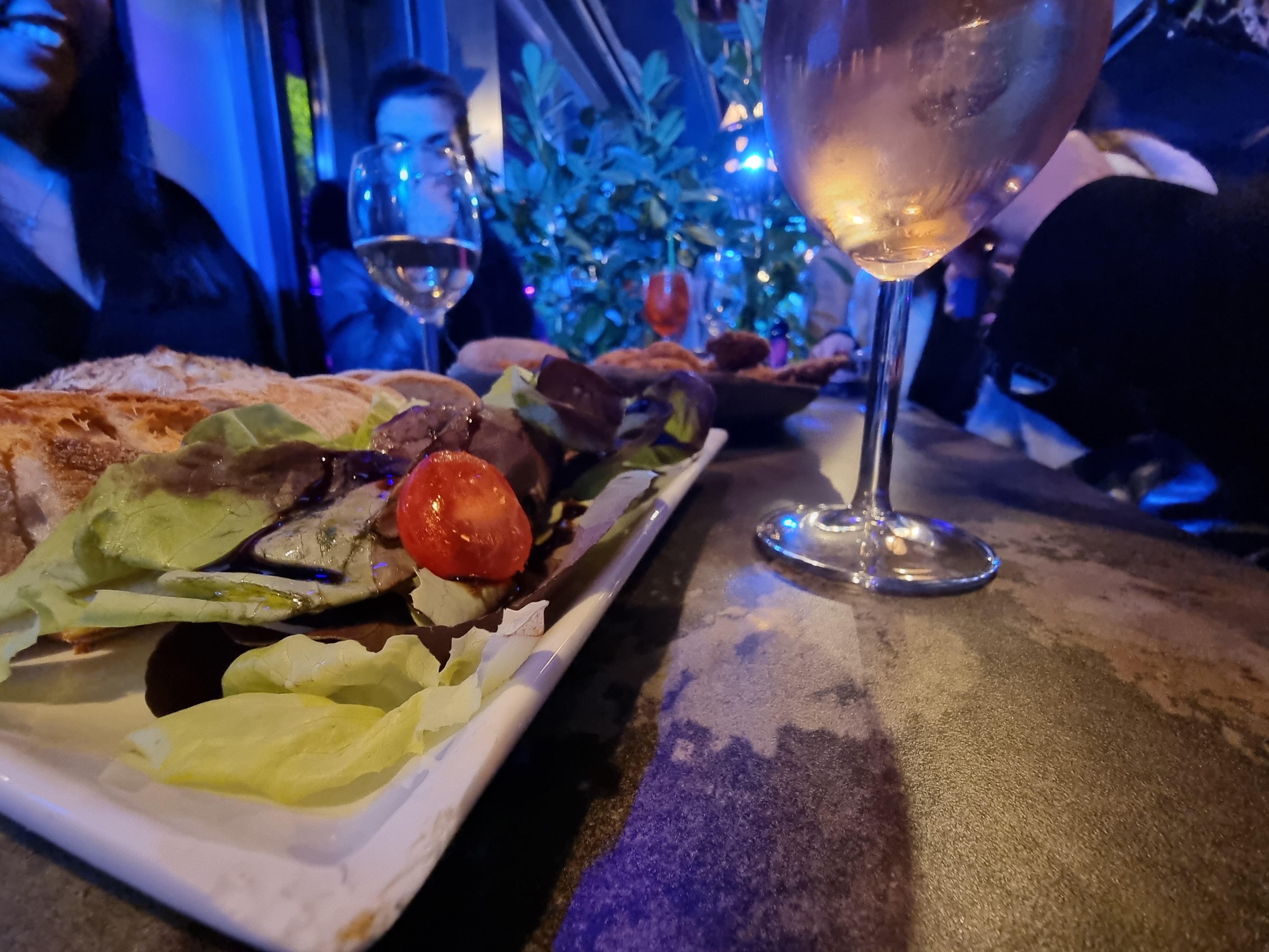 Nous sommes venus à 9 un samedi soir, nous avons directement été placés dehors, avec les chauffages à gaz. Nous étions très bien installés, et servie par une jeune femme adorable, Mélanie, qui nous a chouchouté toute la soirée. Nous n'avons pas été contraints à prendre des bouteilles malgré que nous étions nombreux, chacun a pu prendre ce qu'il désirait. Nous avons passé une très bonne soirée et remercions encore une fois Mélanie pour son accueil et pour son service !