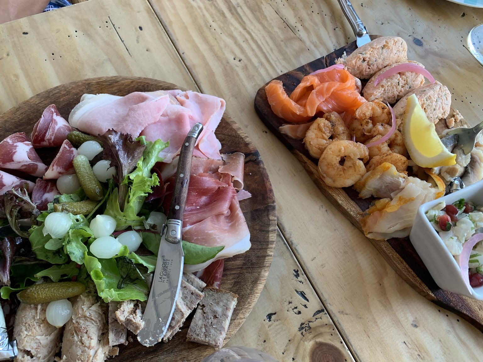 Une belle soirée apéritif dînatoire, il ne faisait pas beau et nous avons pu être dehors, abritées! Belles planches, super caipirinia !