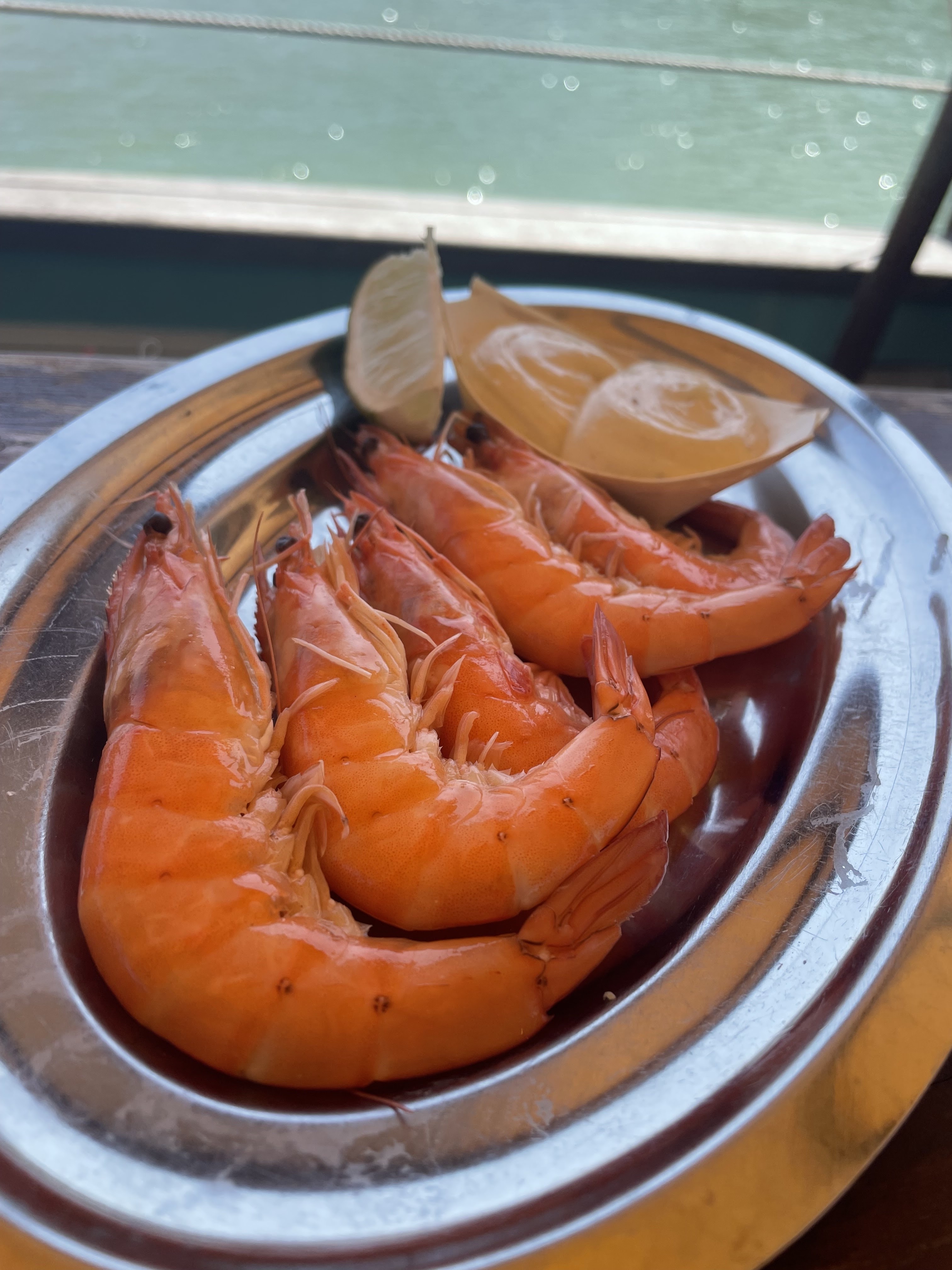 Des fruits de mer simples et frais servis sur un bateau avec un personnel amical - une façon fantastique de se détendre pendant un déjeuner avec de superbes vues et une excellente cuisine.