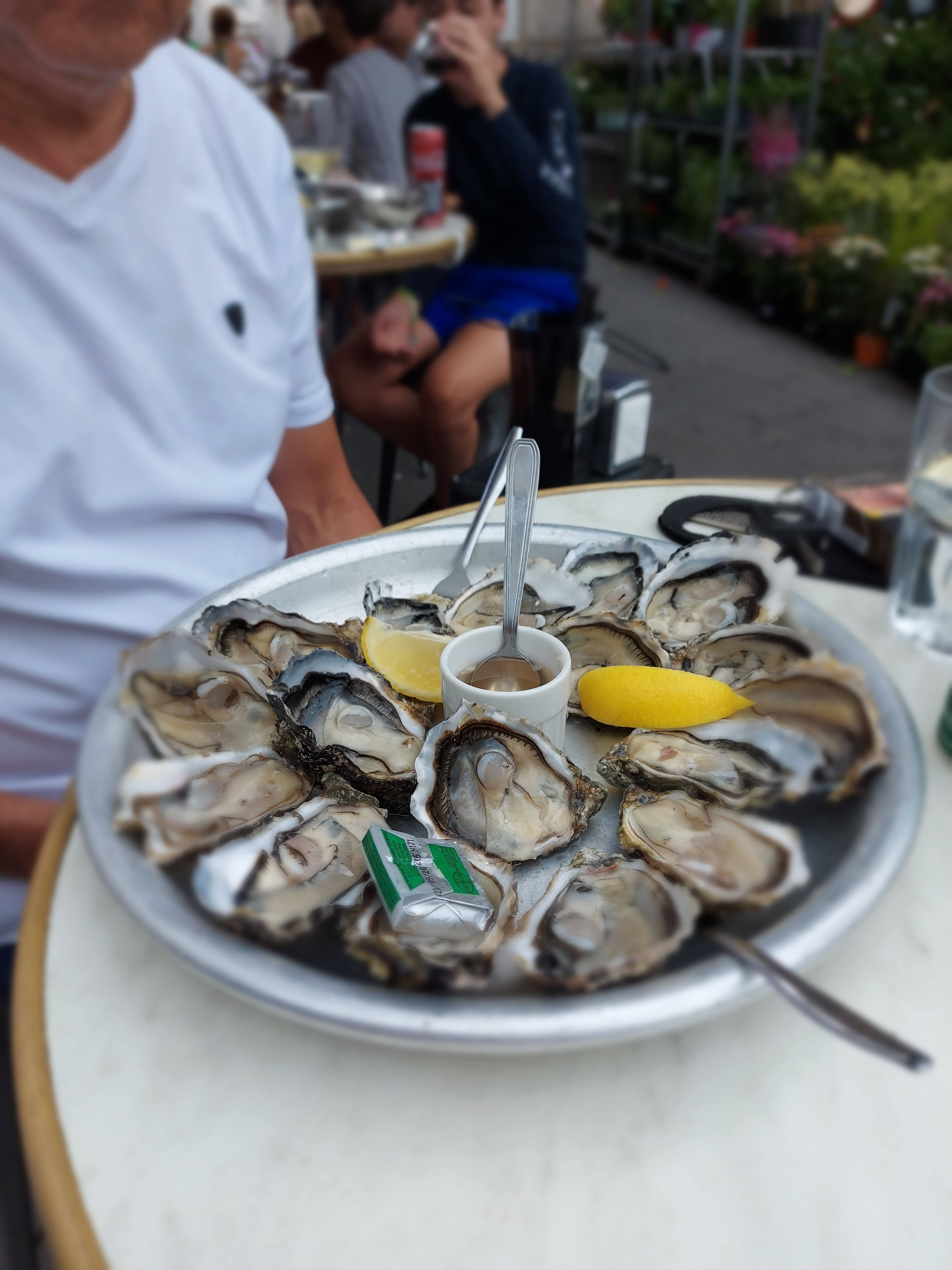 Beaucoup de monde pour un petit bar à huîtres où les huitres étaient excellentes mais ou le service fut très long