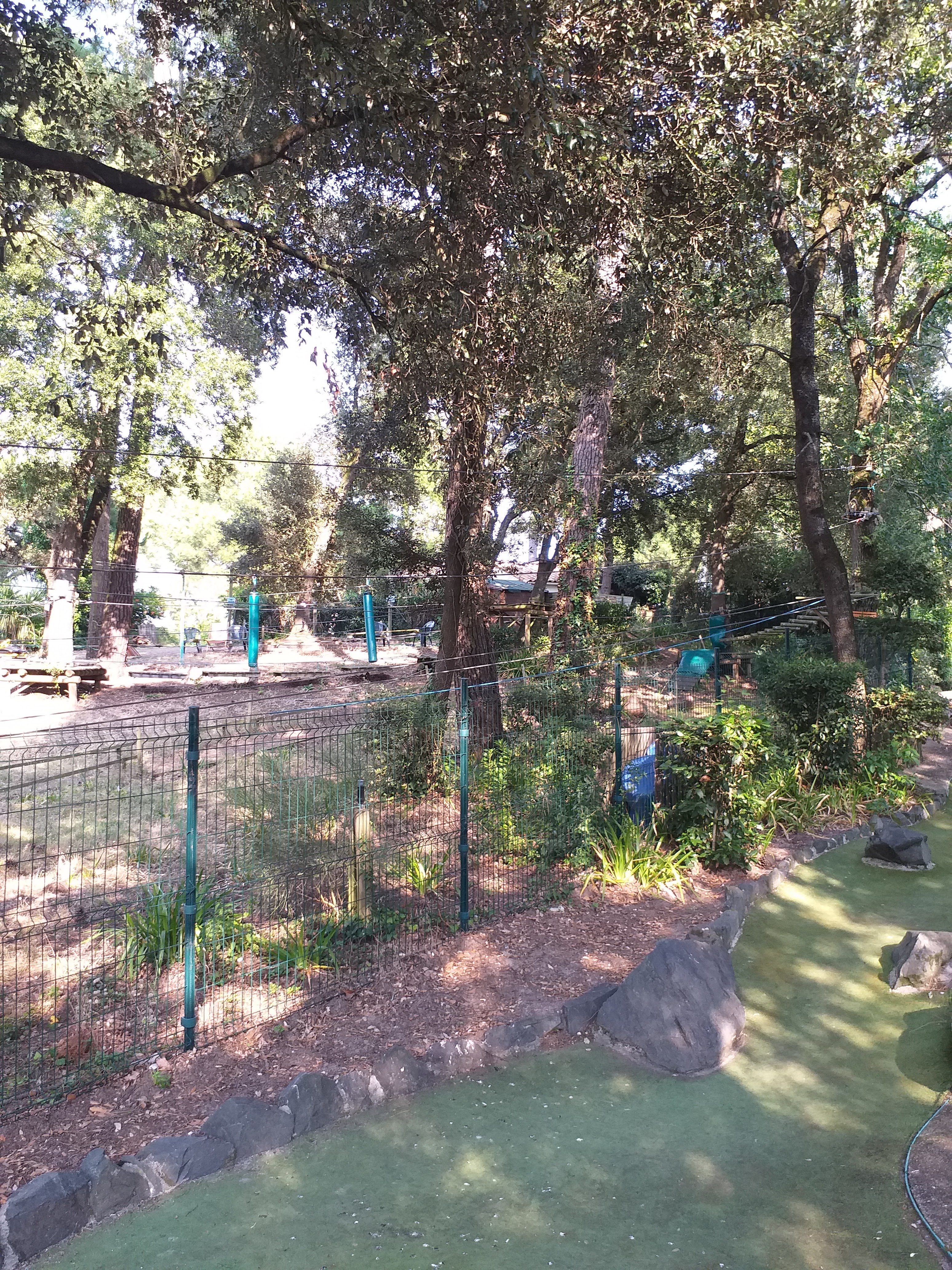 Un bon moment passé en famille malgré tout. Mais l’état du mini-golf est juste honteux. Je mettrais ma main à couper qu’aucun personnel n’a mis un pied sur le parcours depuis des années. En résumé : Green arraché, bosselé de toute part. Bordures dégradées, bois pourris, ciment déchaussé. Glands, cailloux, feuilles et brindilles en pagaille sur tout le parcours. Des bornes absentes (il faut deviner le numéro du trou). Bon et le parcours en lui-même est pas incroyable, très répétitif : une trajectoire, trois obstacles en bois ou en pierre. Voilà.
