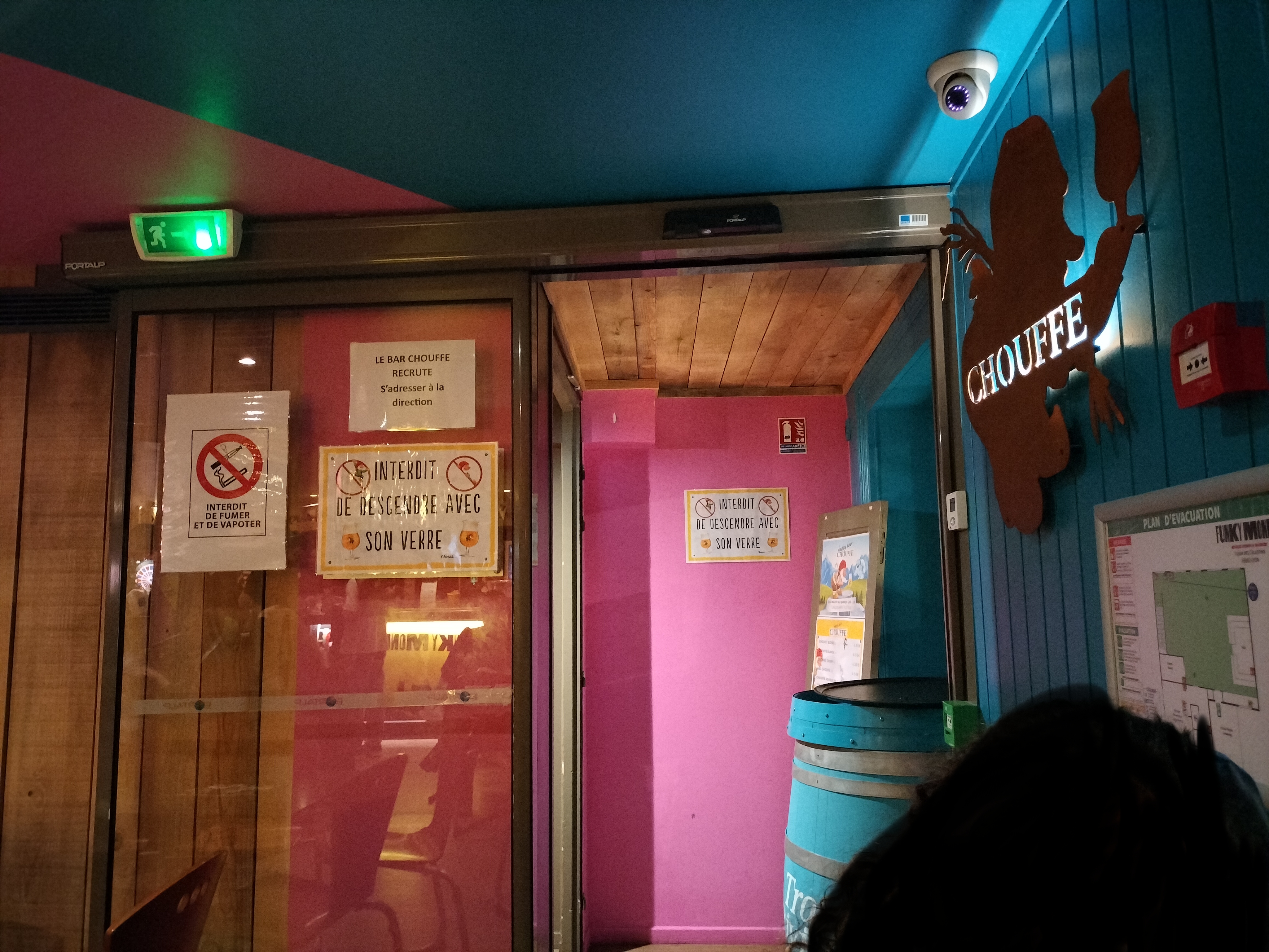 Fun interdit !!! Ici vous n'avez pas le droit de passer un bon moment si cela fait trop de bruit. Vous n'aurez pas le droit de manger de 16h à 18h et pas le droit de faire trop de bruit sur le reste de la journée. Les barman son sympa c'est dommage 🫸 Super bar à chouffe en haut, en bas les gens sont MÉCHANTS