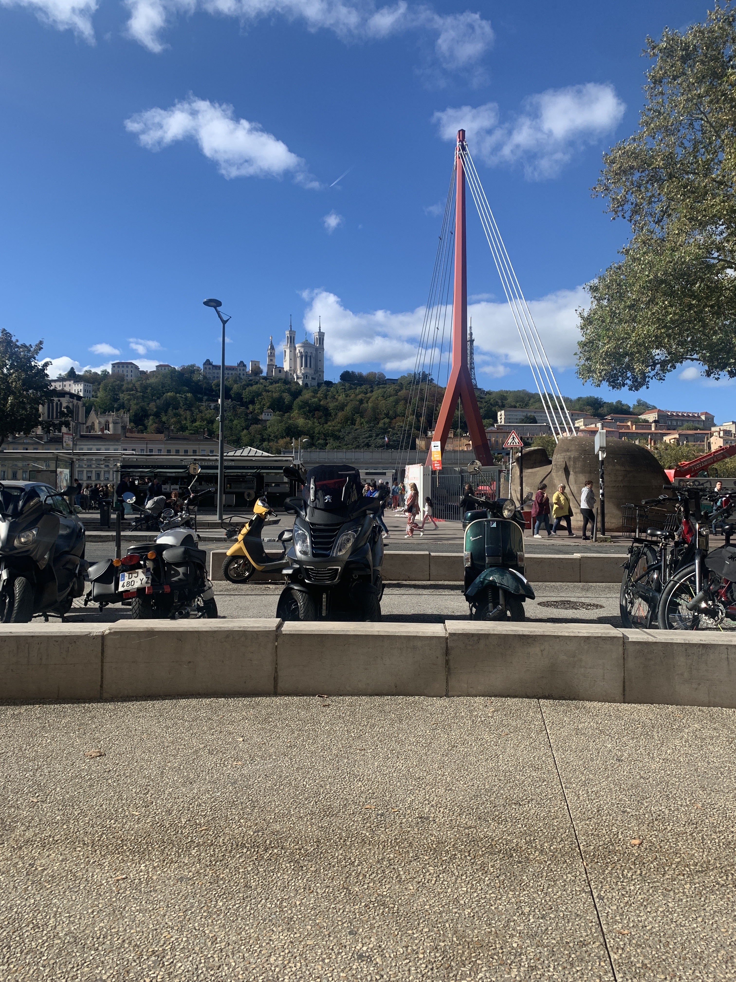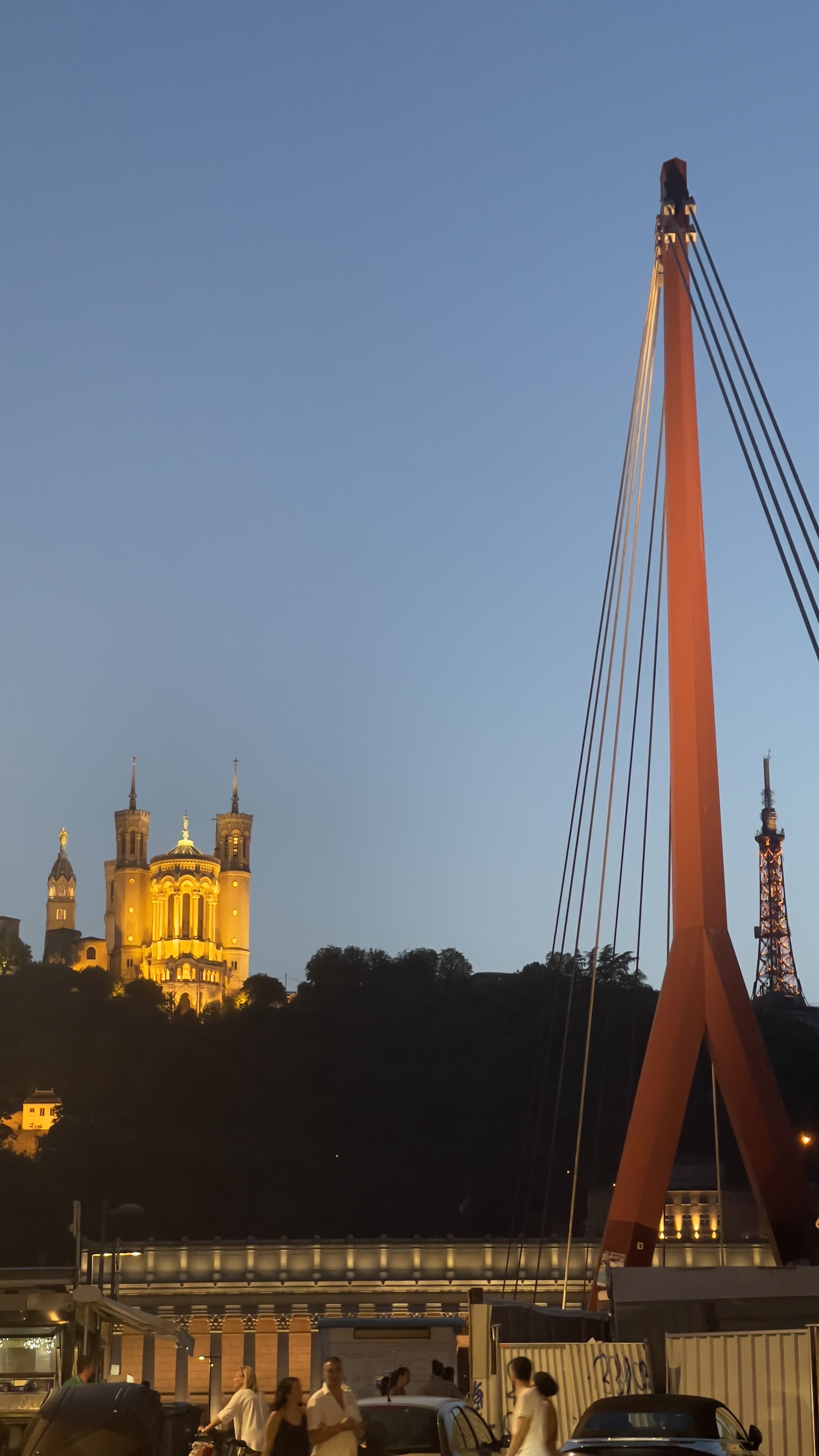 Halte pour une planche mixte et une pinte de Chouffe en terrasse face à Notre Dame de Fourvière. La classe 😎