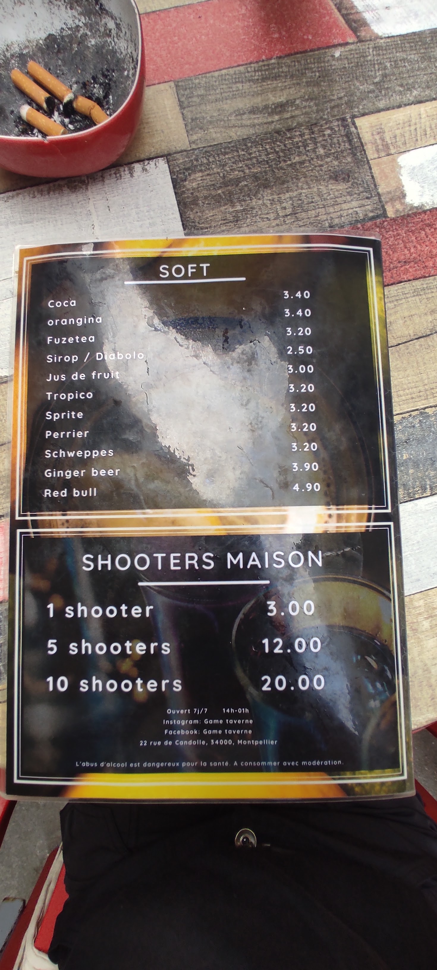 C'est un bar que je conseille tout particulièrement ! Déjà la game taverne est facile d'accès en centre ville, a 5min a pied de l'arrêt Louis Blanc 😄 Ensuite a chaque fois que j'y suis allée l'ambiance était top, les barmans super sympas et les cocktails delicieux. J'ai toujours ramené de nouvelles personnes avec moi pour leur faire découvrir ce bar et aucune n'a été deçue 😄 Enfin, note +++ pour les soirées des vendredis soir consacrées au jeu du Loup-Garou au sous sol qui met dans l'ambiance. Les animateurs sont super sympa, droles et savent diriger le jeu 👌 J'invite tout montpelliérain à y aller au moins une fois !