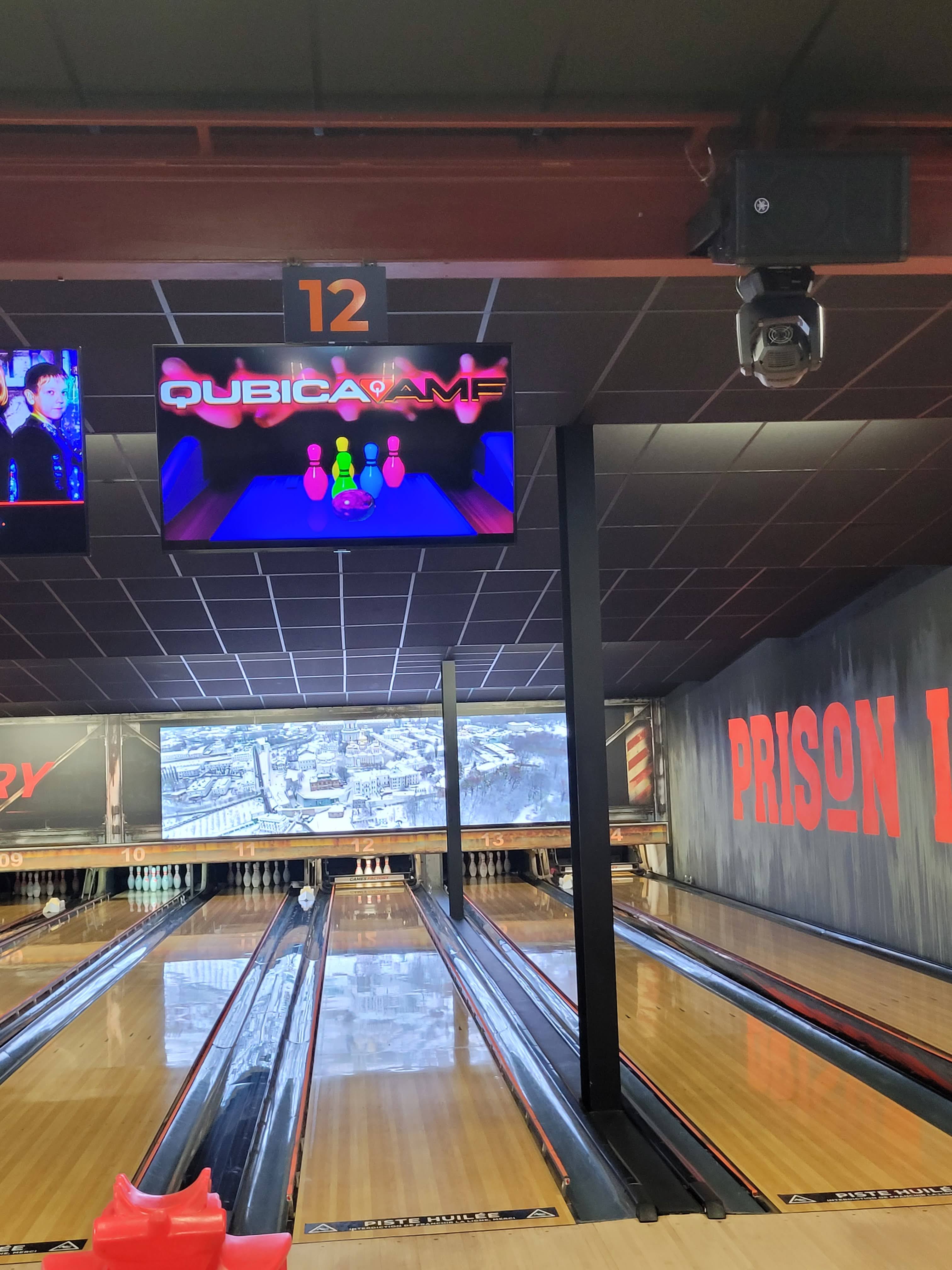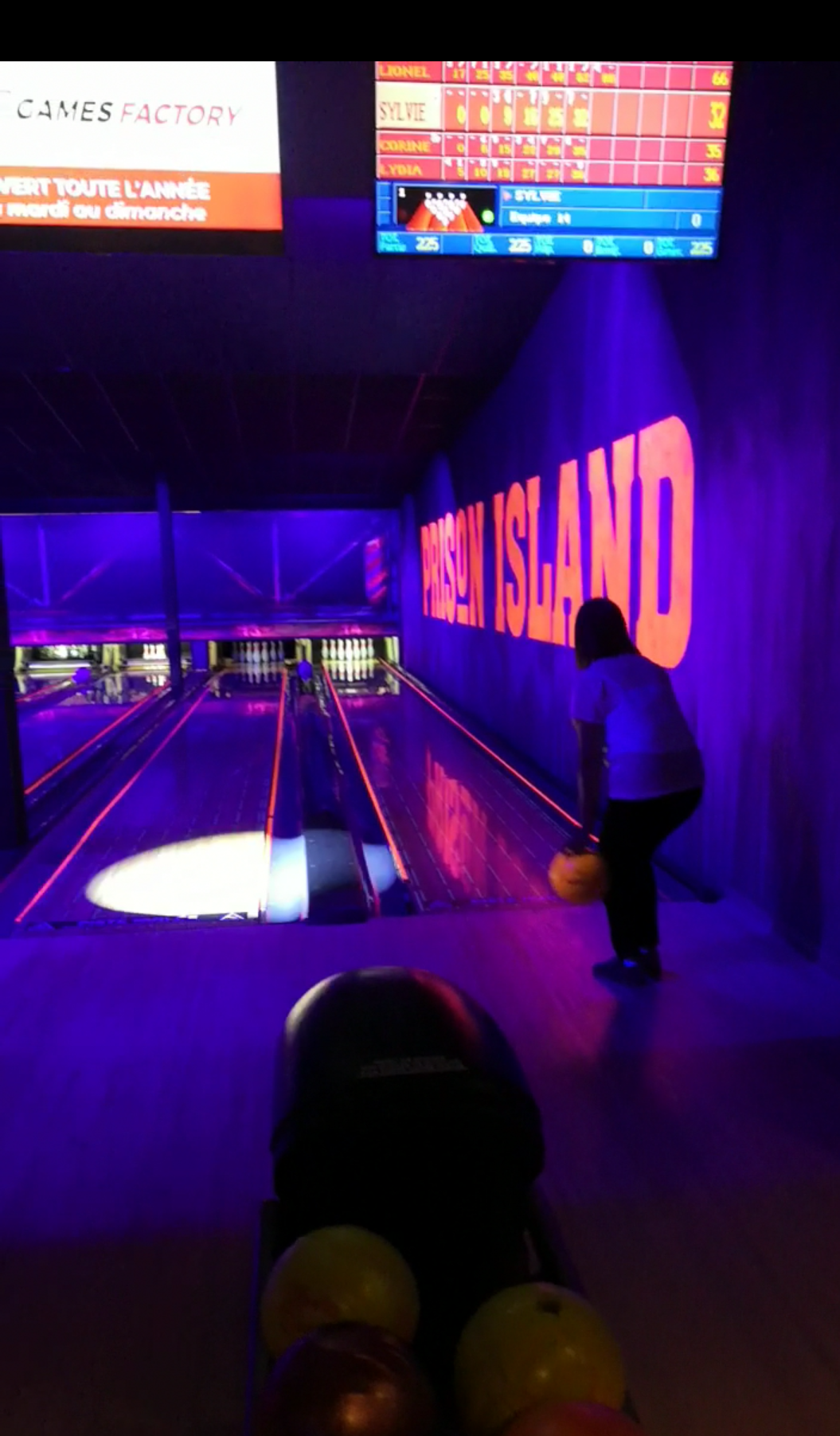 Ambiance sympathique avec toutes les lumières fluos Par contre notre piste ( la numéro 13) a eu deux fois un soucis pendant notre partie. Nous avons dû appeler deux fois le staff pour venir débloquer les quilles bloquées, et ça a fausser nos points ..