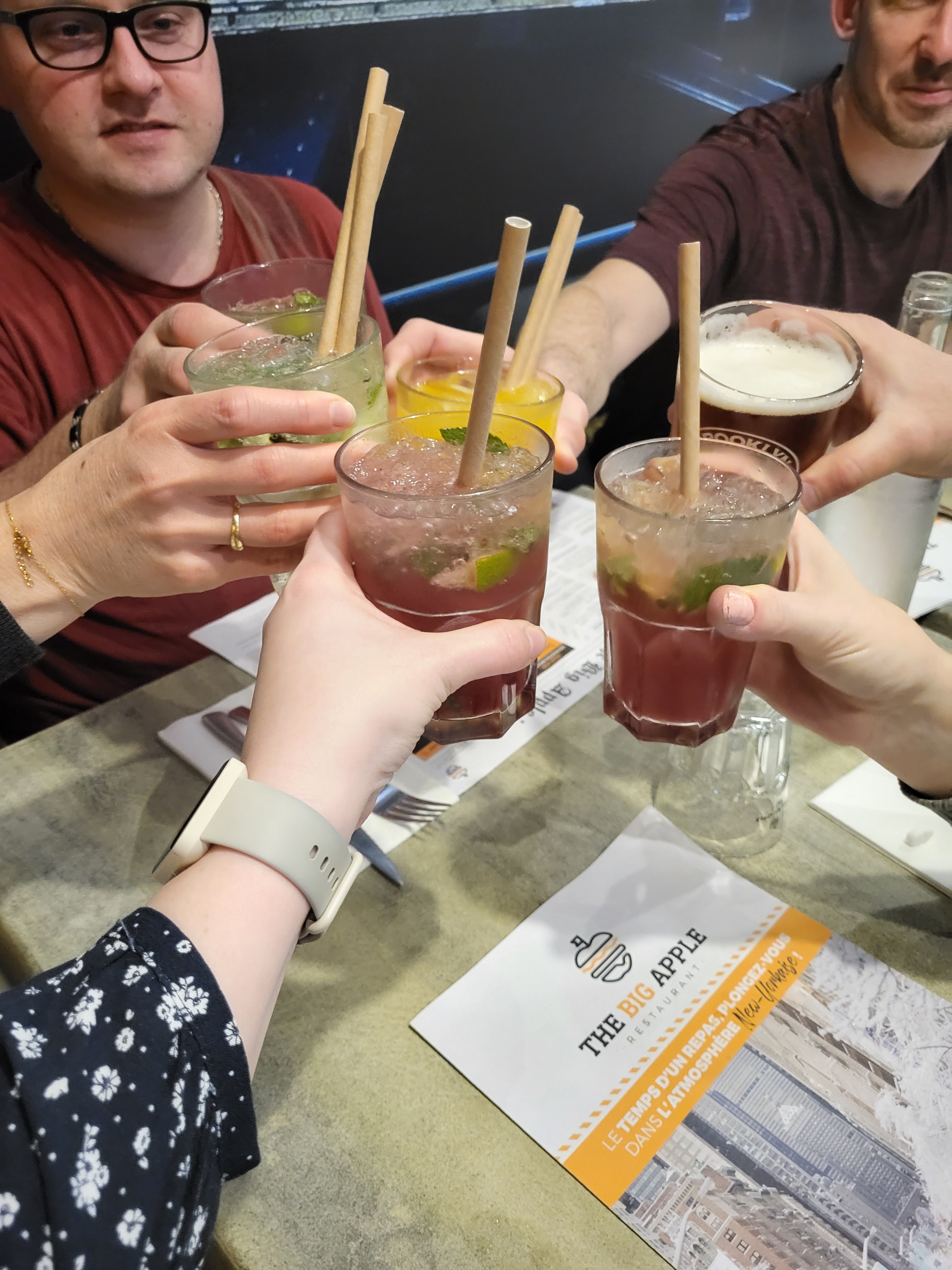 Super moment à The Big Apple 🍔 Un accueil chaleureux par Arthur; les conseils avisés de Corentin pour le choix du repas, la gentillesse de Delphine lors du service et le punch de Laura tout le long de la soirée ! Je recommande, les plats sont copieux et le prix est abordable.