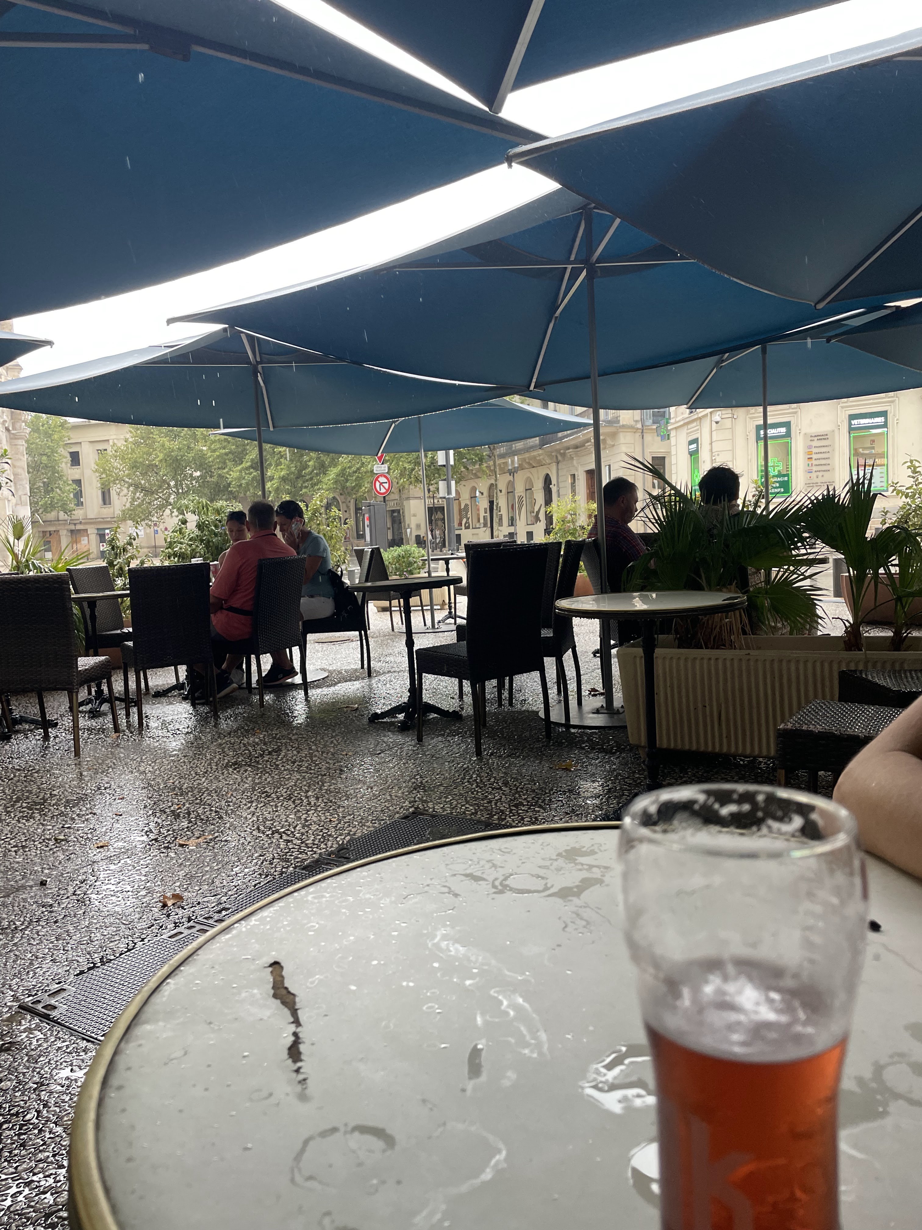 Emplacement idéal, plantes en pot un peu défraîchies, peu de renouvellement, bière pression un peu trop fade ( Serait-ce de l‘eau à la bière ? Franchement!), Gentillesse du serveur, et verres d’eau en plus en période de canicule sur simple demande. Heureusement que l’humain prône sur la qualité de la mousse!