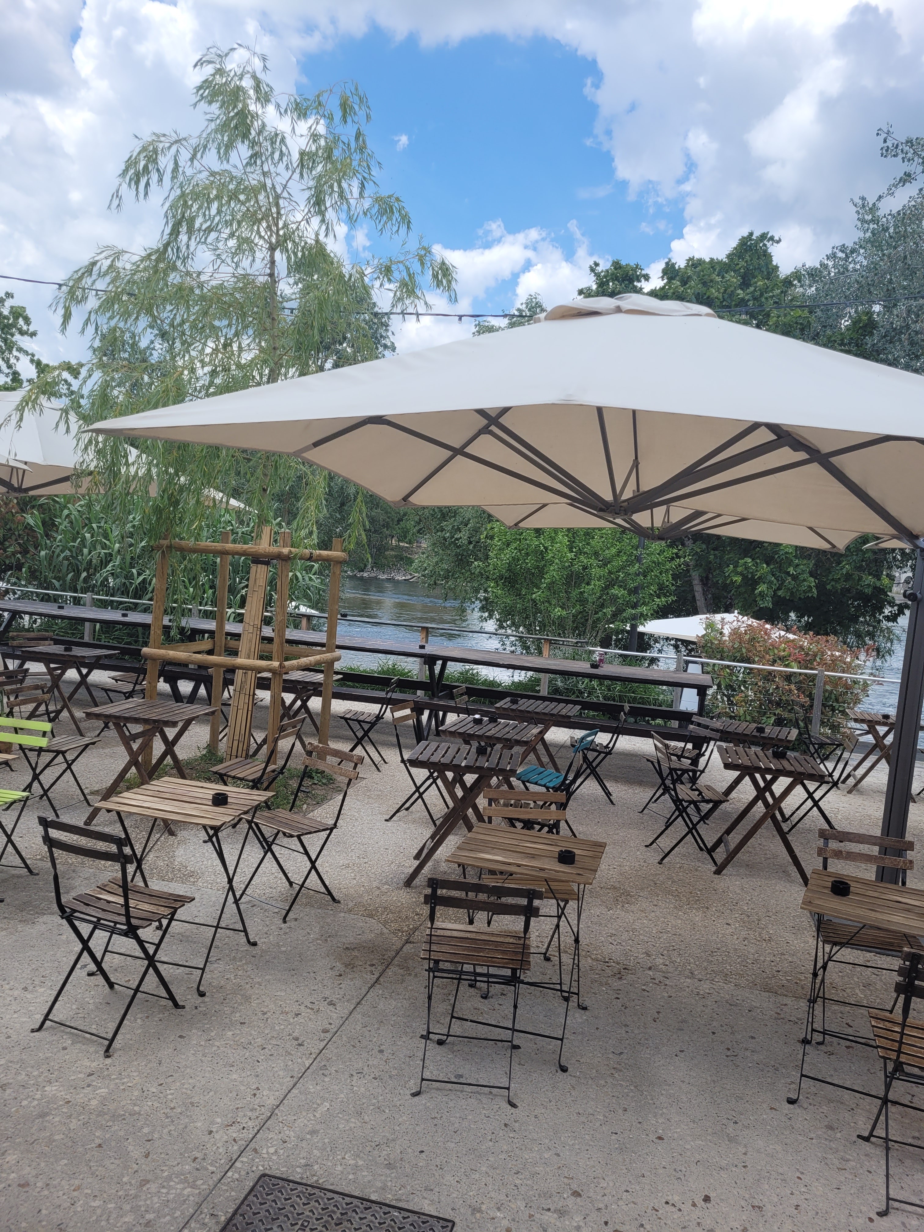Lieux très agréable en bord de Loire qui permet de prendre un verre tout en profitant d un cadre bucolique en pleine ville! Le service au bar était un peu lent mais cela vaut le coup! Je recommande vivement de vous y rendre pour profiter au mieux de la chaleur et du soleil !!