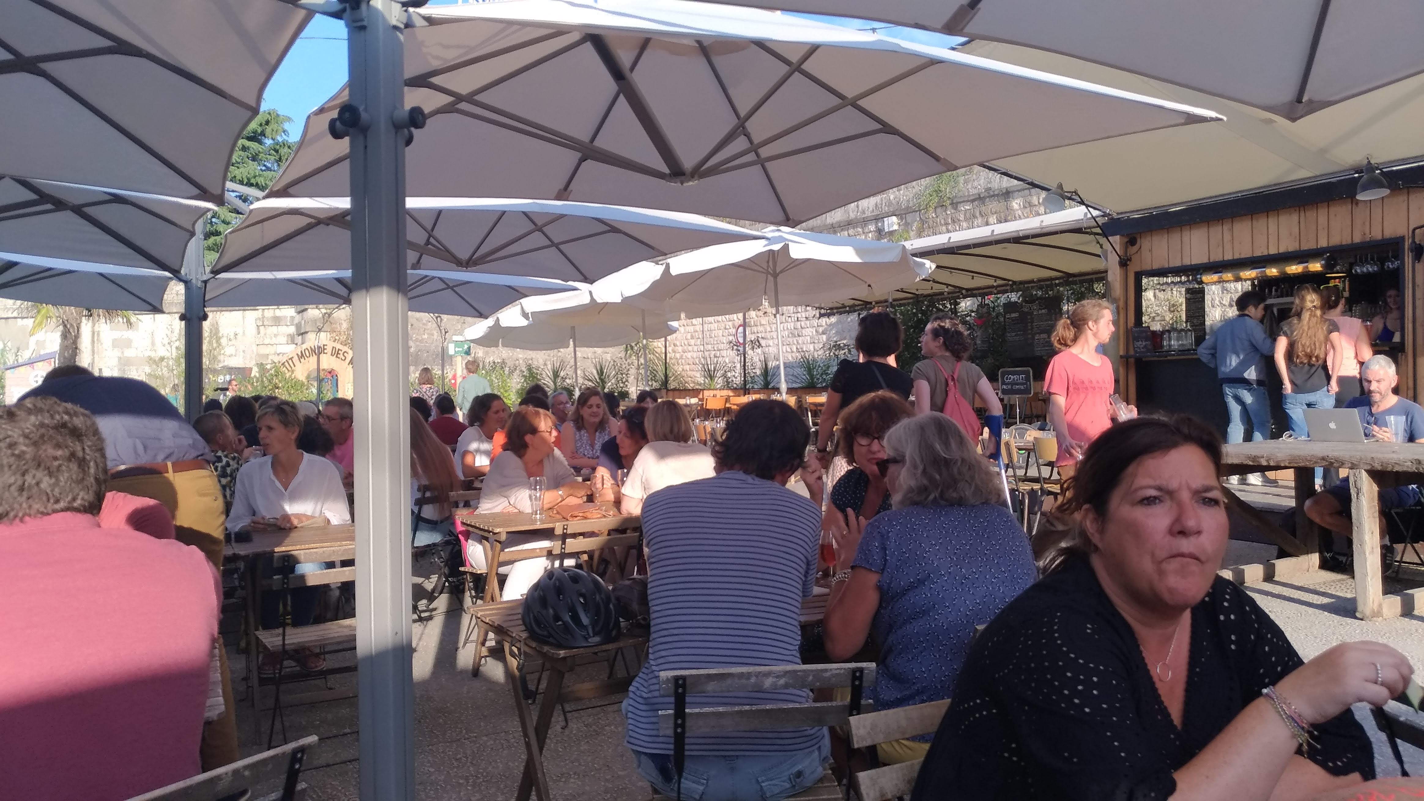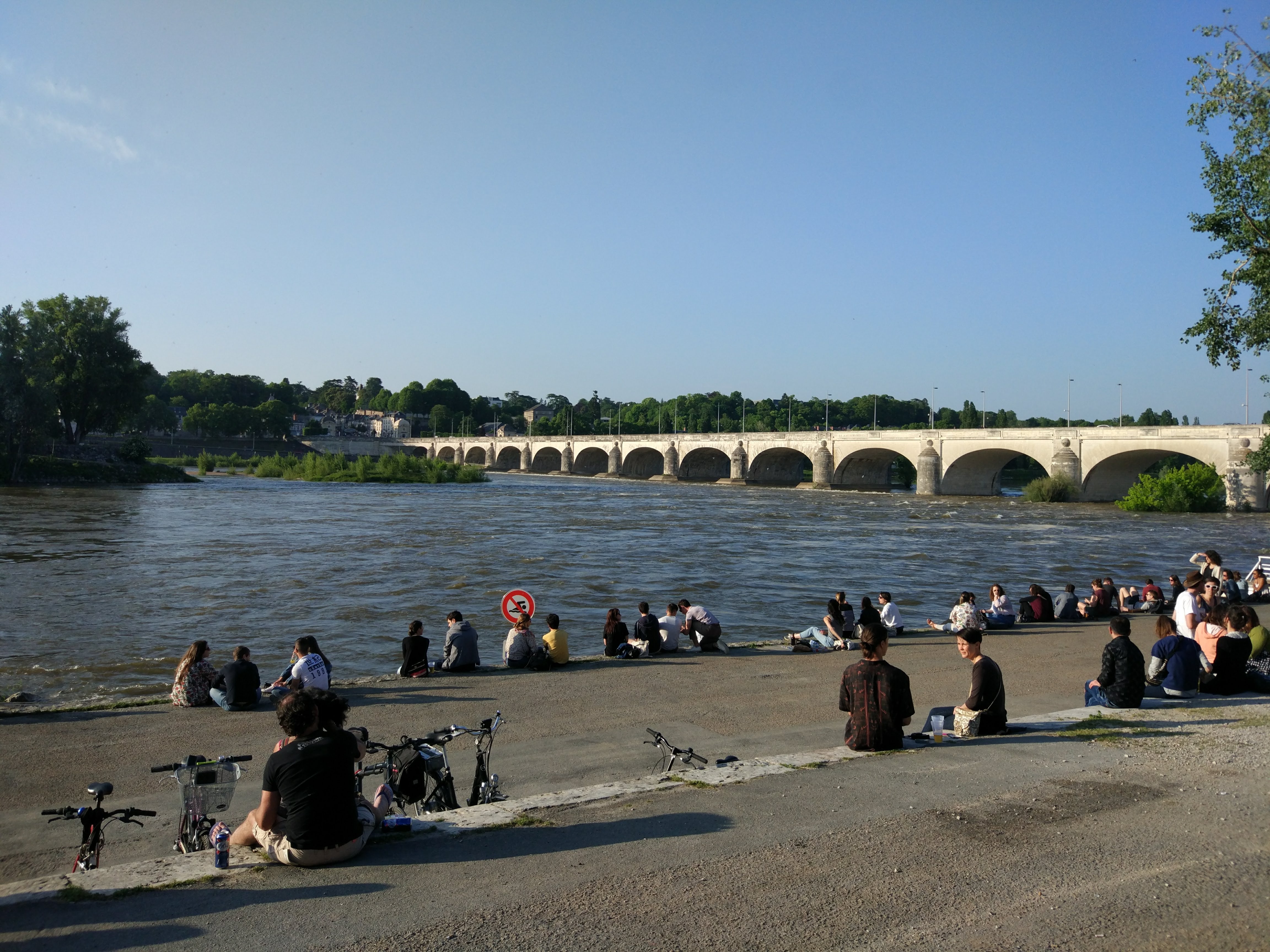 Beaucoup de monde et peu de places, ambiance sympa et chill, parfait pour un verre face à la Loire !