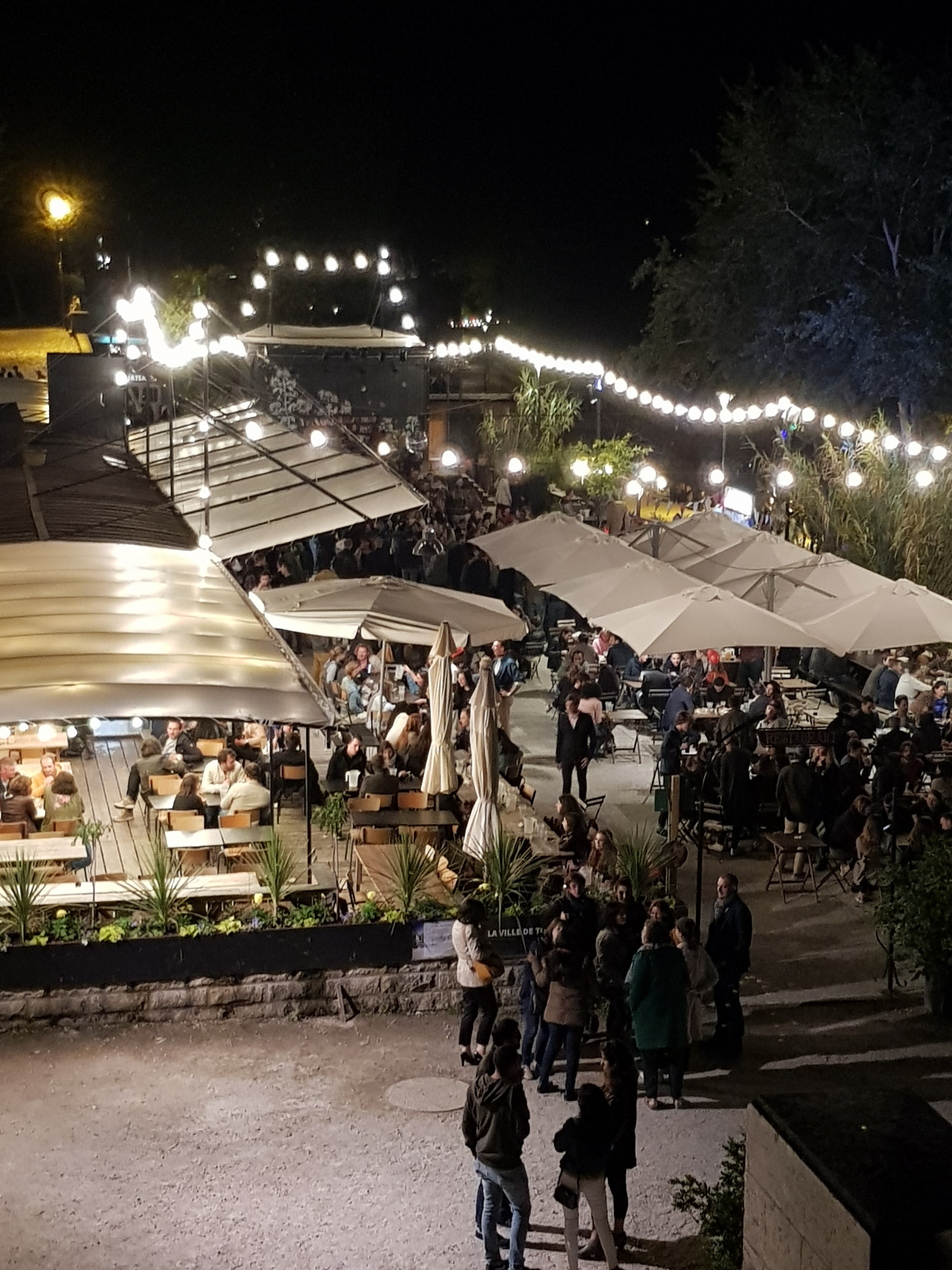 C'est un lieu festif et agréable... Le soir et le week-end les gens sont heureux de s'y retrouver pour trinquer, dîner et s'amuser entre potes. Un brassage agréable, tous les styles et âges se côtoient dans la bonne humeur... Vous pouvez également profiter de la guinguette, au calme et y prendre un bon café le matin. Dommage que ce lieu soit éphémère !