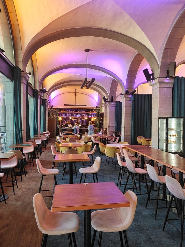 Lieu avec lumière tamisée jolie déco en parcimonie , mais bien choisie, musique cool qui colle bien au lieu …. Après , le repas servi dans une Assiette ébréchée pas top !!! Les sièges sont tâchés, concernant le croque monsieur …. Alors revisité ok mais de là à ce que le pain rond soit très très grillé , le Jambon limite toasté , à mon avis réchauffé au grill du midi , le comté absent !!!! 15 € bon …. La cuisine décevante, le cuisto m’en a refait un autre , rien à voir … le houmous était « un peu sec » sans doute mal ou pas sélophané du midi Les vitres de la La vitrine à desserts , pas top côté nettoyage …. Après les Serveurs sont souriants et très agréables Les wc, publics , eux ne sont pas nettoyés pour la réception des clients le soir après la fermeture du musée , pas cool non plus ! Ça pourrait être un magnifique établissement pourtant ….. choisissez bien et demander bien ce que vous commandez si c’est du midi ou vraiment frais