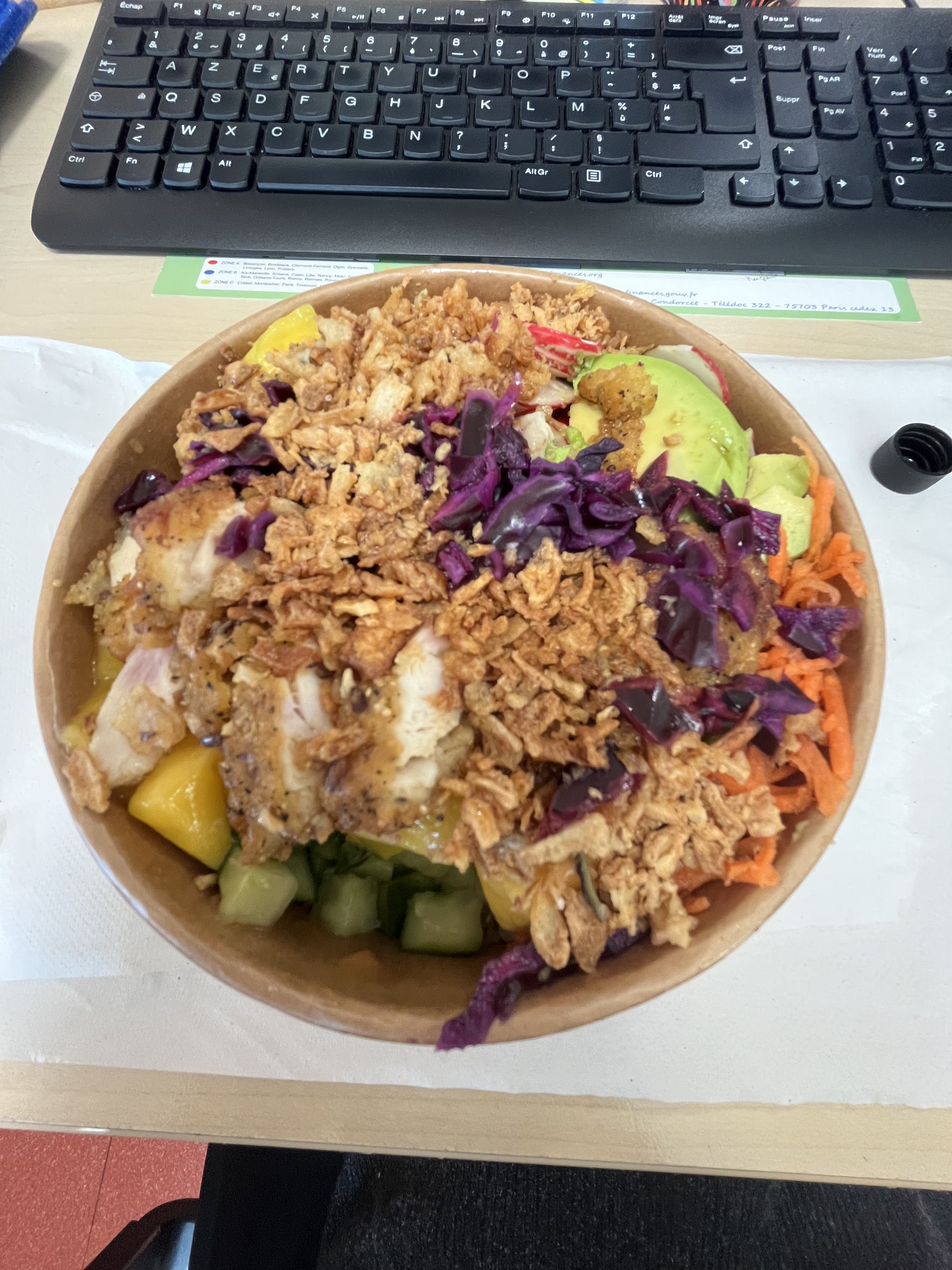 Le poulet croustillant est très bon. Le bowl est tjrs bien rempli :)