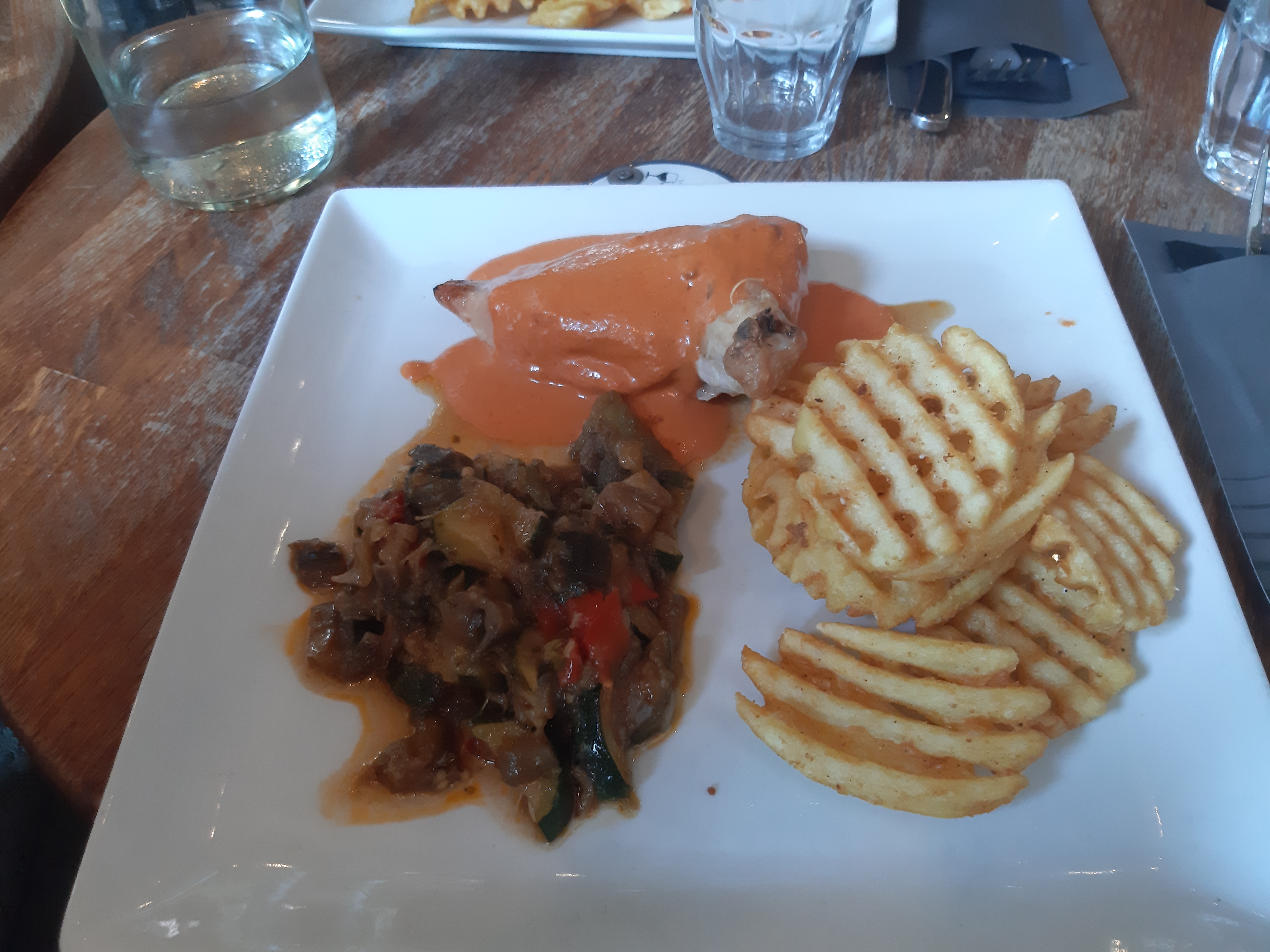 La nourriture est sans plus, le service est nullissime. La serveuse nous reproche de faire un signe de la main pour l'appeler, alors même que ça fait 15 minutes qu'on attend qu'on vienne débarrasser nos assiettes et qu'elle est là à papoter avec des collègues tandis qu'il n'y a plus grand monde dans le resto.