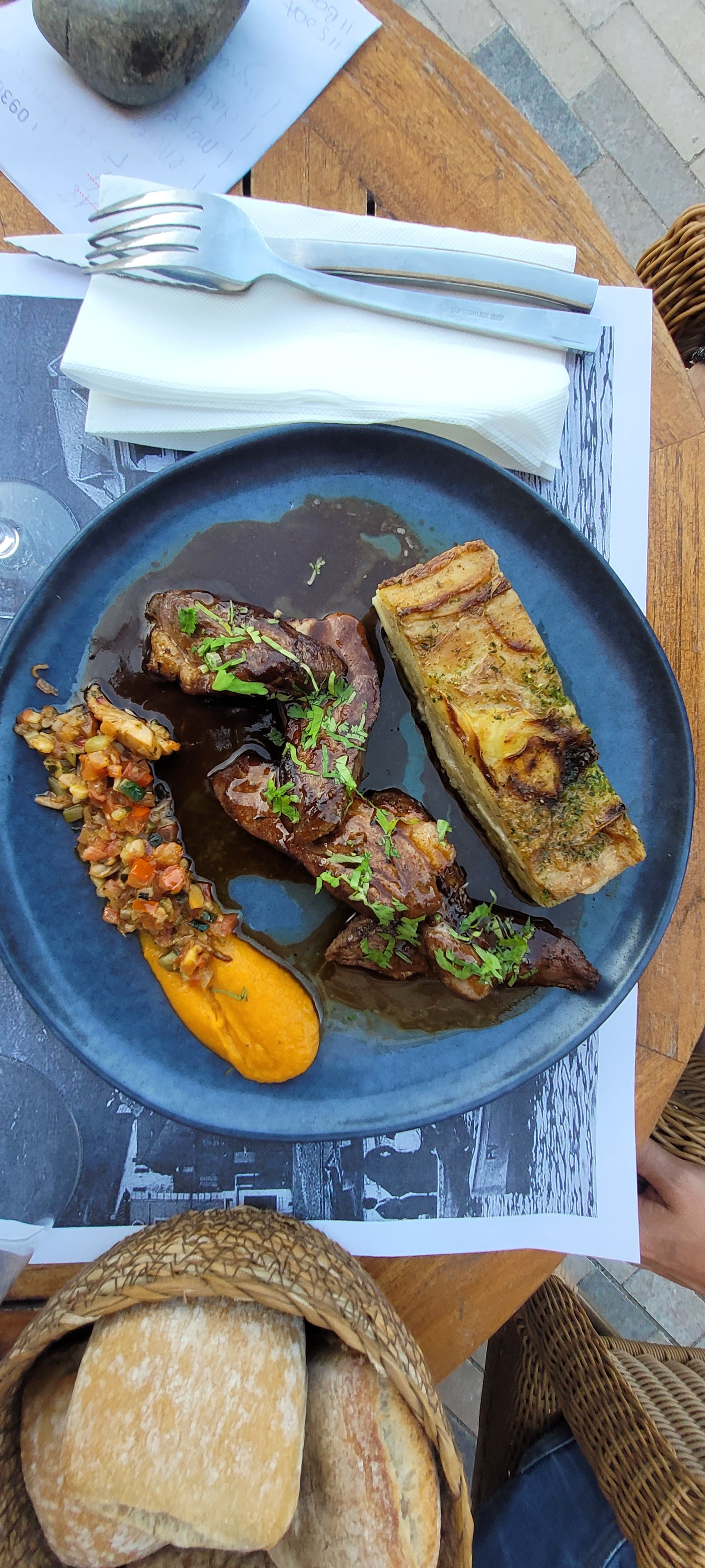Une belle surprise avec le menu du jour du restaurant la Dorade. Une viande très tendre (légumes parfaitement cuits et frites maison) , avec un joli accompagnement, une très bonne sauce (au Banyuls !). Le chef (de retour au restaurant après quelques années d'absence ) très sympathique !